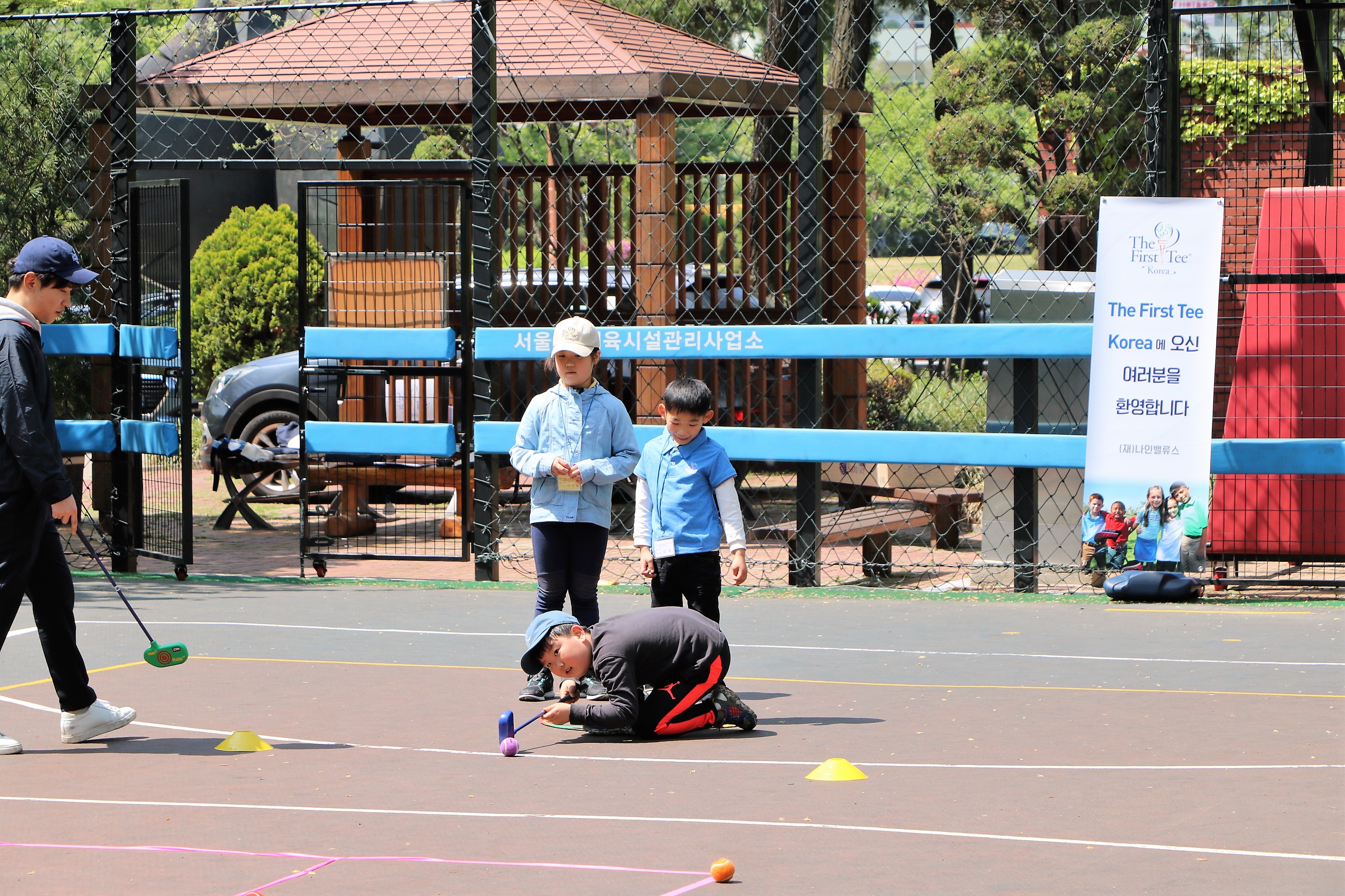 프로시합 못지 않게 퍼트라인까지 보며 신중하게 퍼트에 임하고 있는 교육생