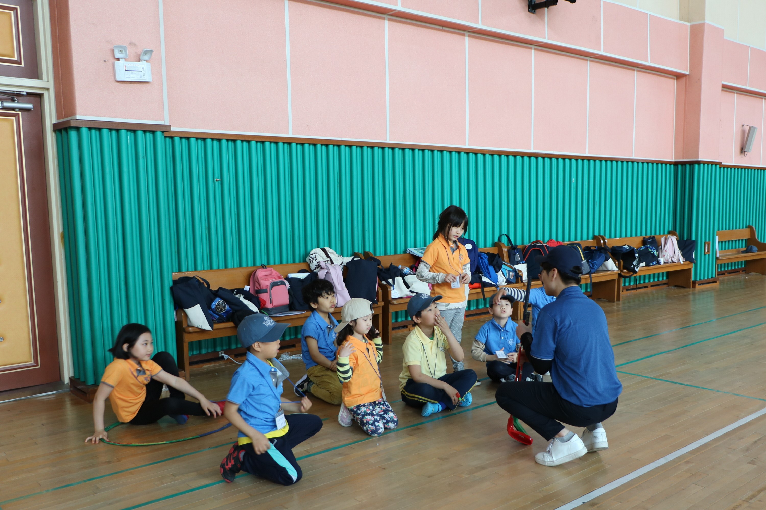 8인 1조로 나뉘어 그룹레슨을 받고 있는 아이들