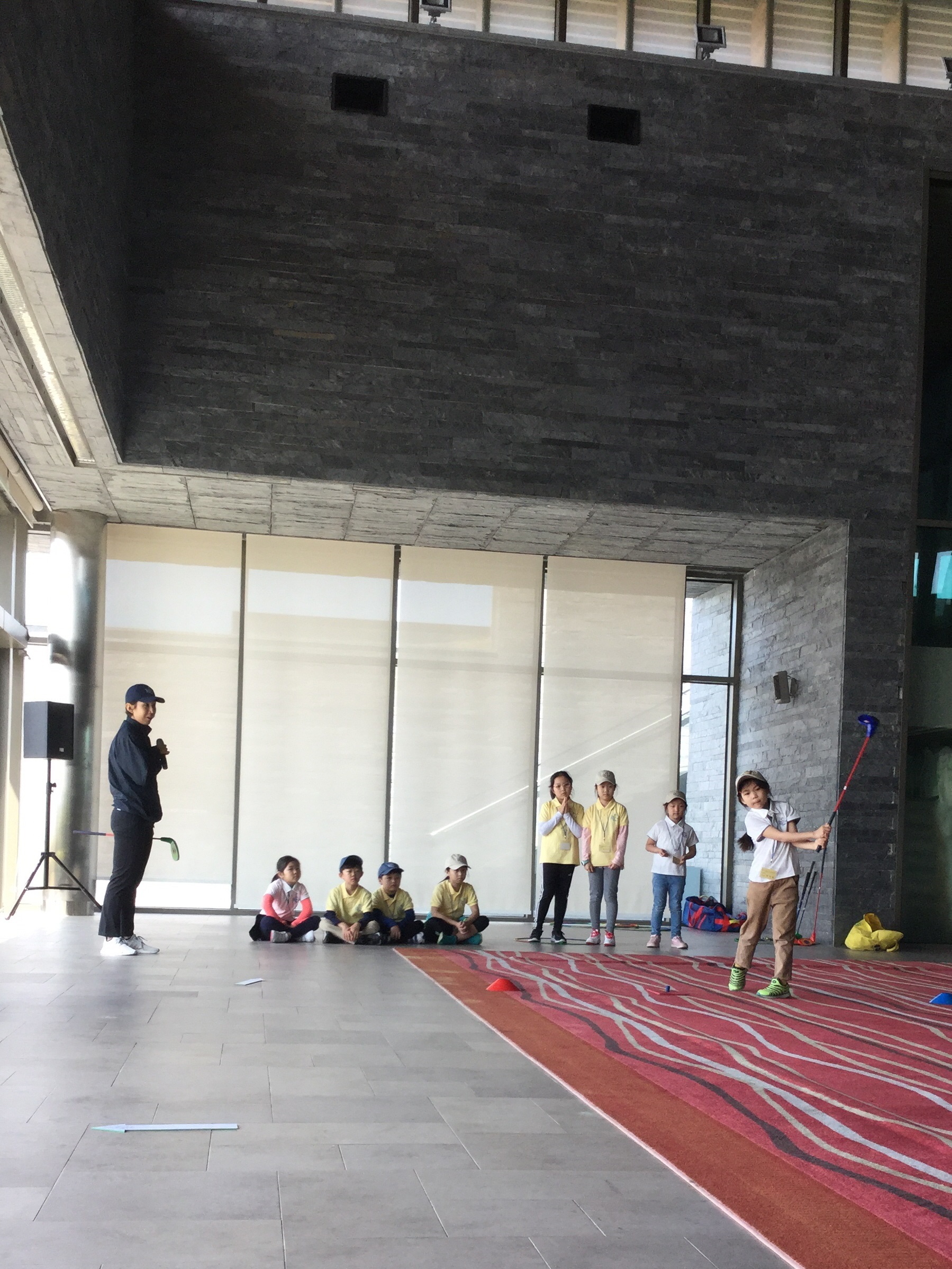 레슨 받은대로 힘차게 팔로스루를 하며 풀스윙 동작을 하고 있는 교육생