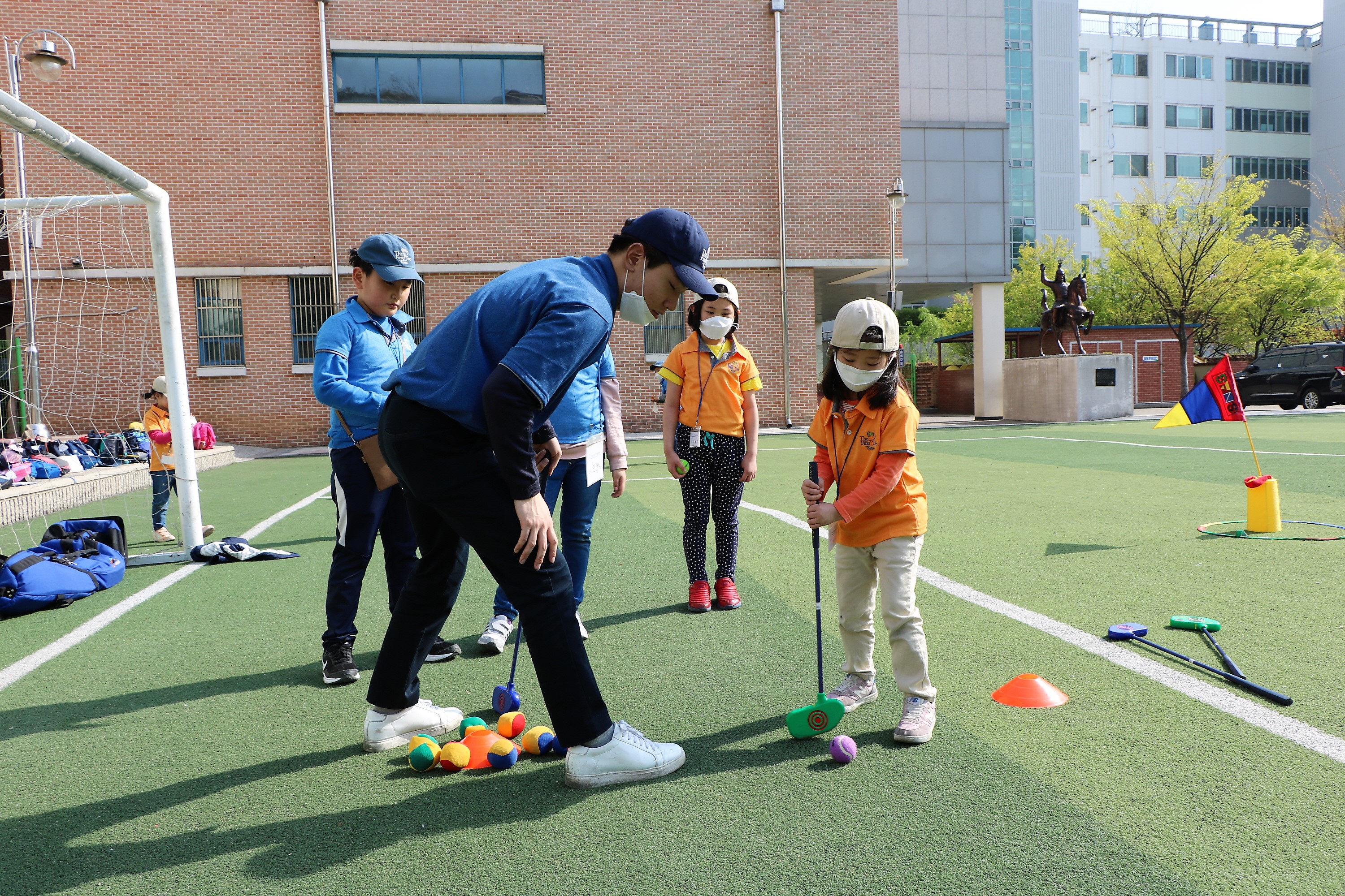 강의 후 교육생들에게 실제로 퍼트하는 요령을 1:1로 설명해 주고 있는 모습