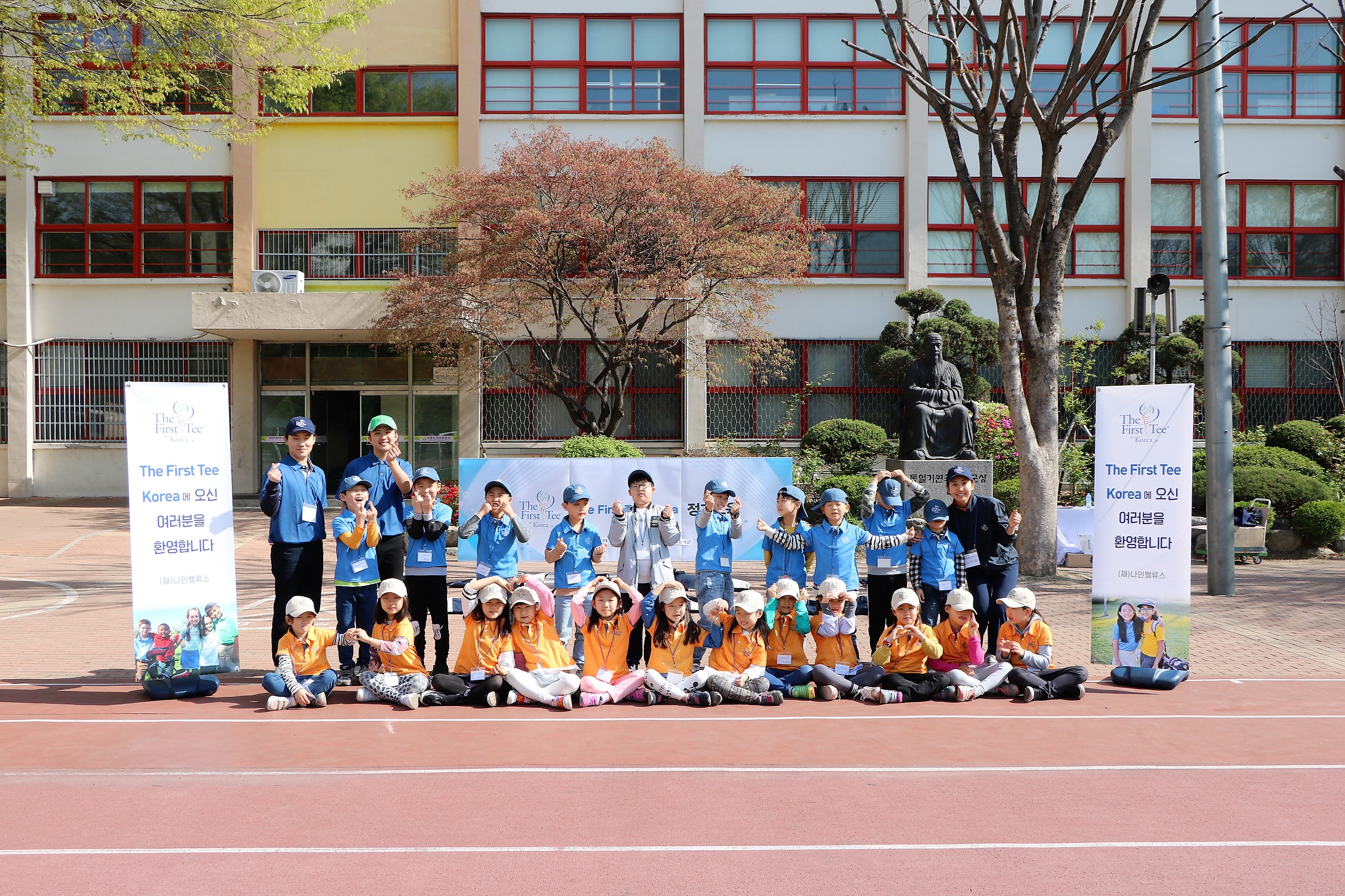 세명의 코치님과 함께 사랑의 하트를 날리며 기뻐하는 교육생들