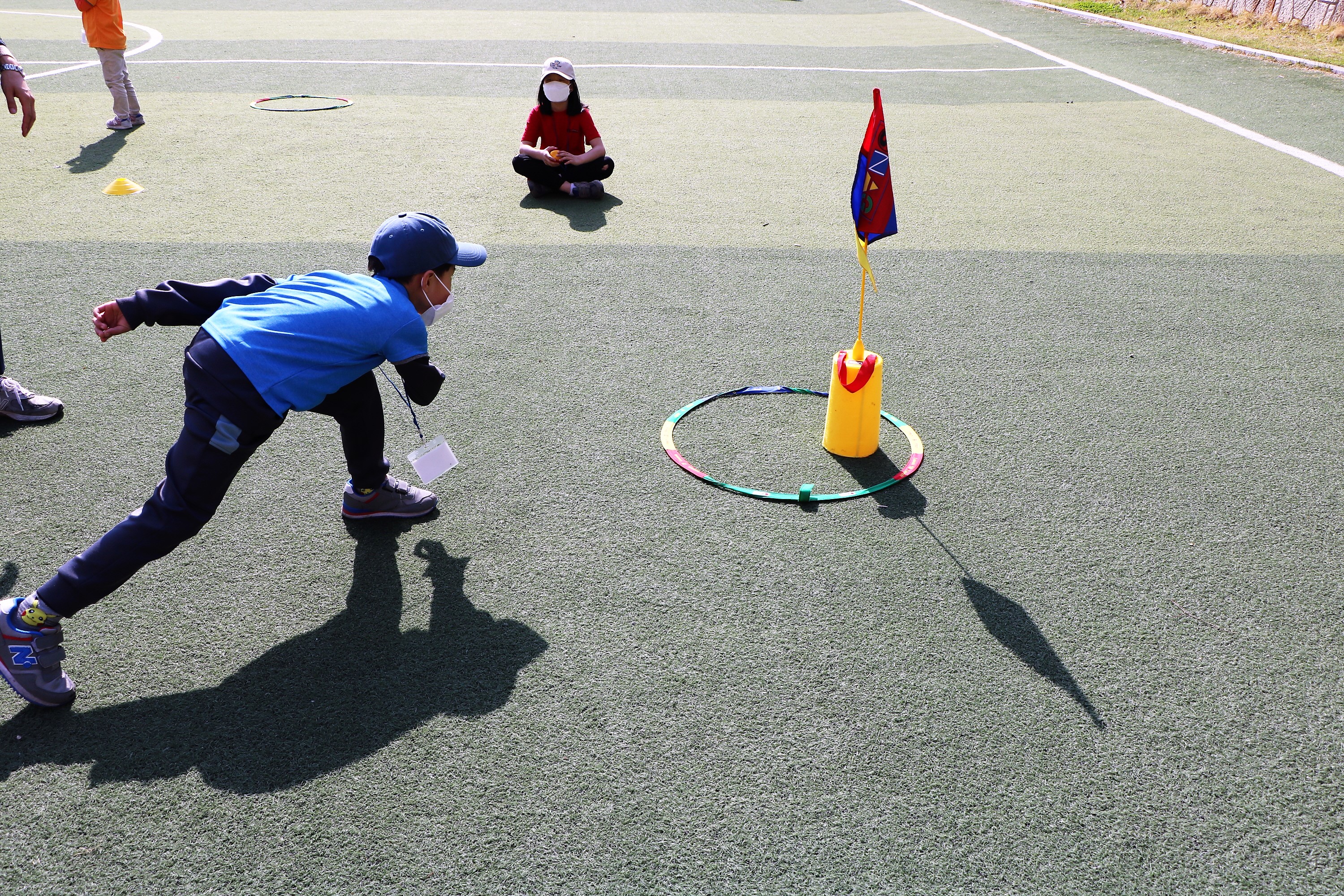온그린 시키기 위해 신중하게 공을 던지는 교육생