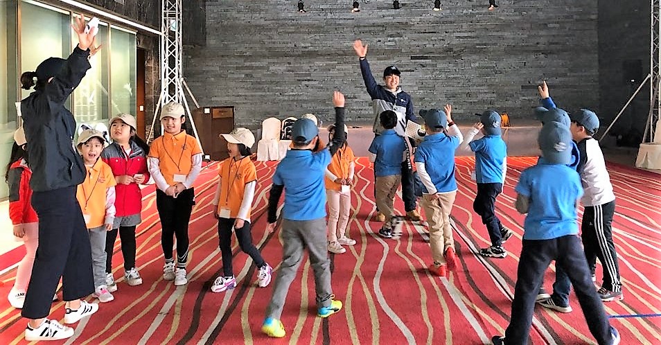 코치님과 하이파이브를 하며 승리를 만끽하는 아이들