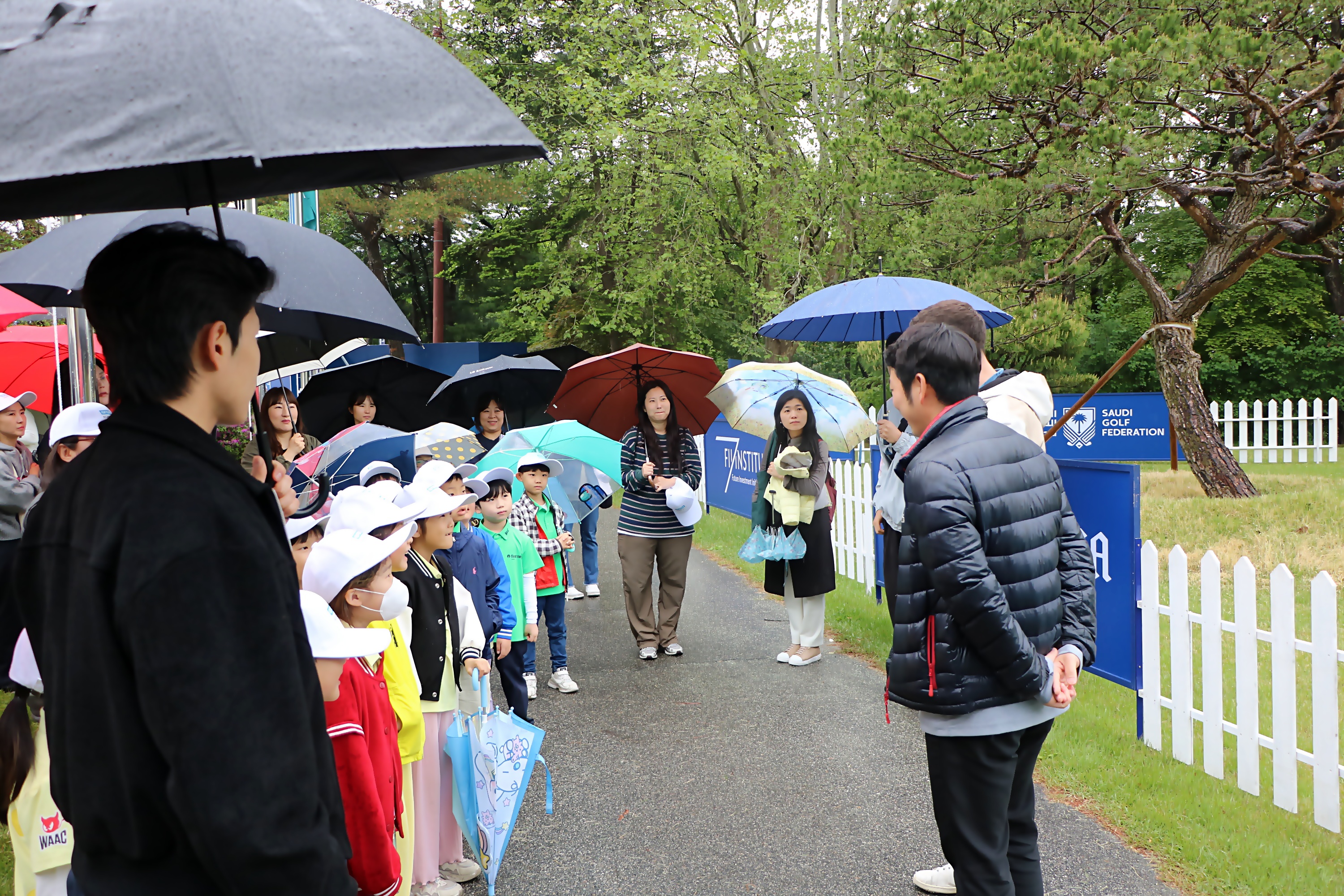 아람코 대회 관계자들을 반겨 맞이하는 아이들과 부모님