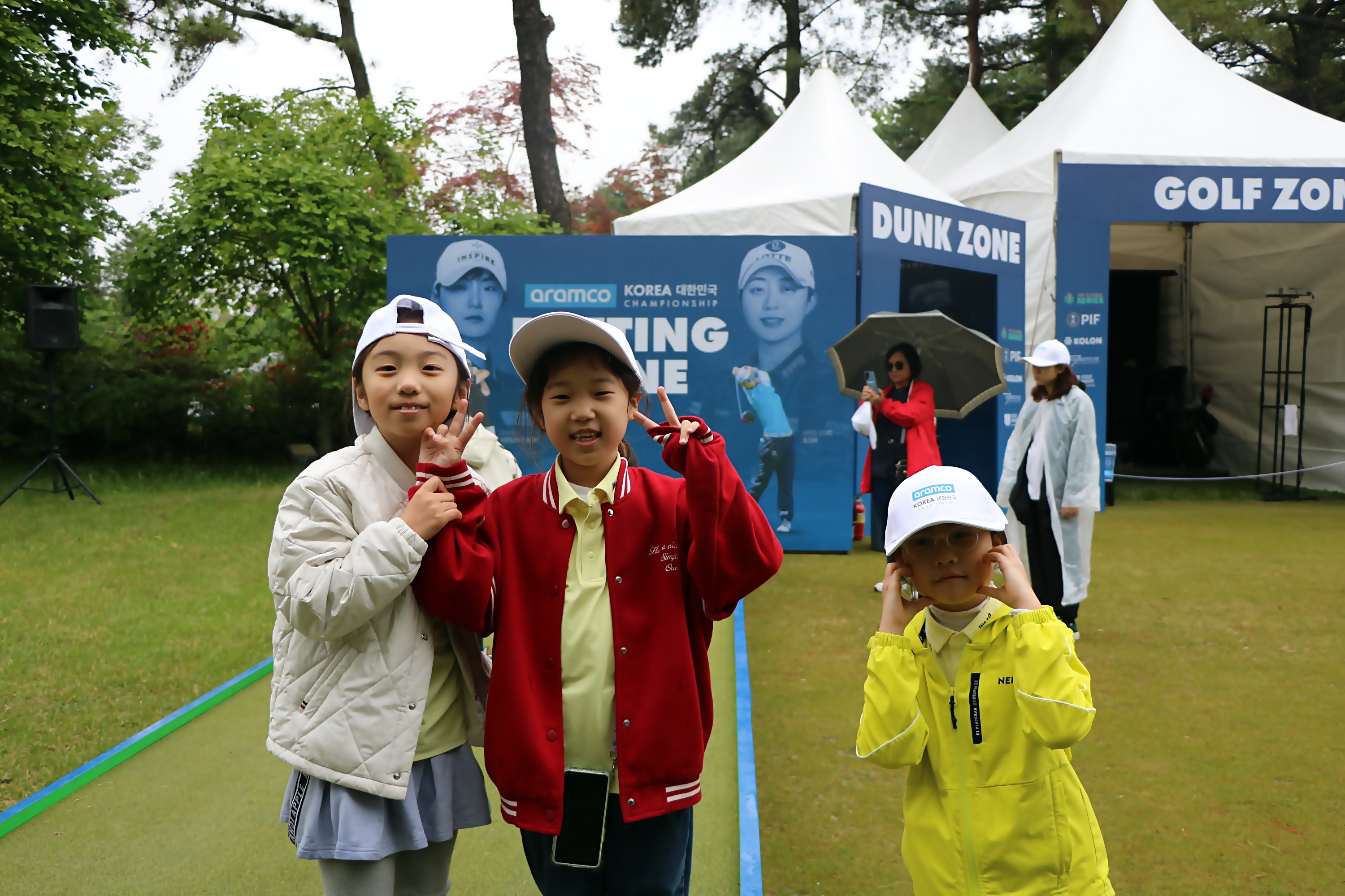 퍼팅게임을 하며 즐거워 하는 아이들