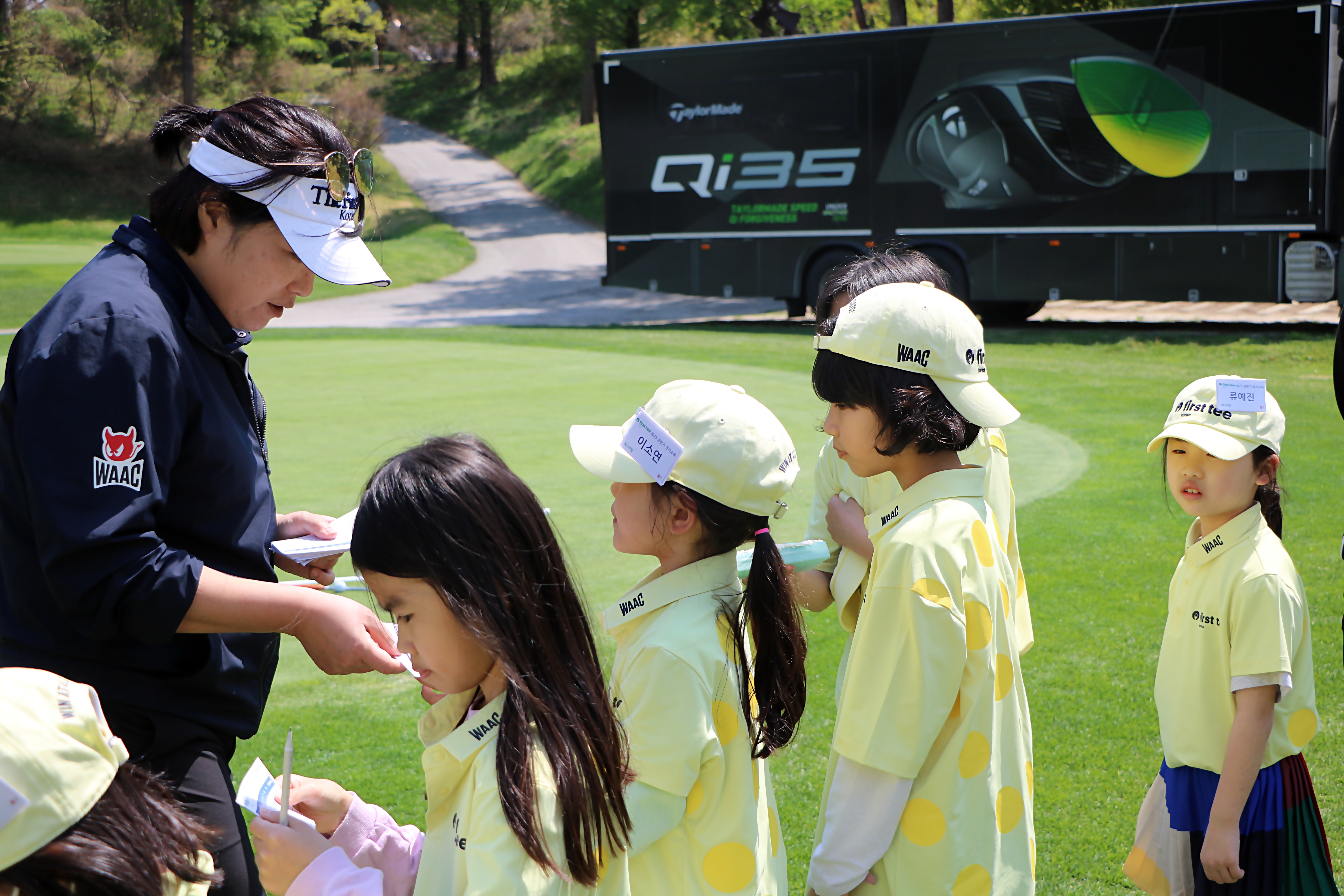 퍼팅게임 실습에 앞서 스코어카드를 나눠주면서 작성법을 설명해 주는 코치님