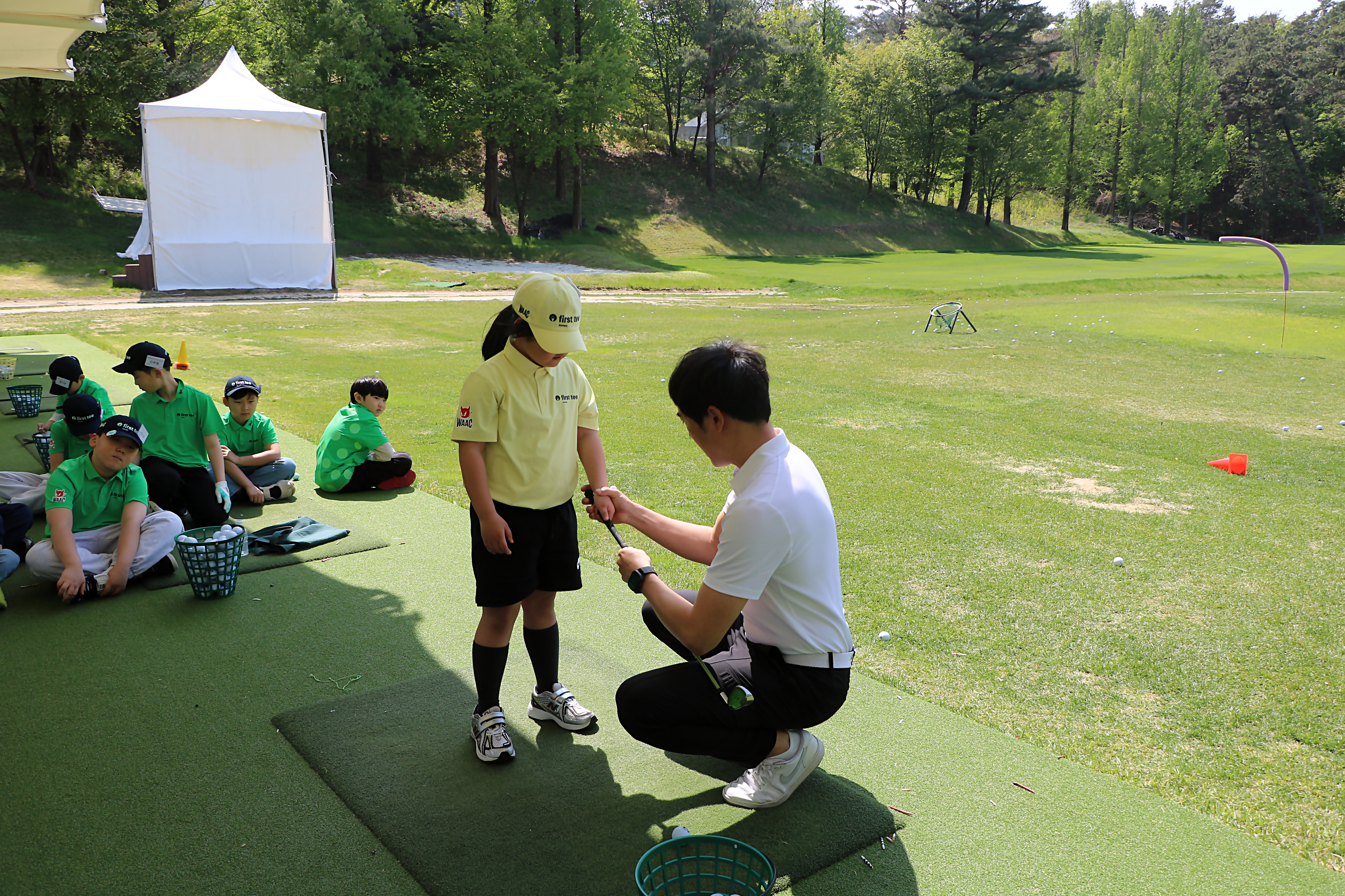올바르게 그립 잡는 법을 가르쳐 주고 있는 모습