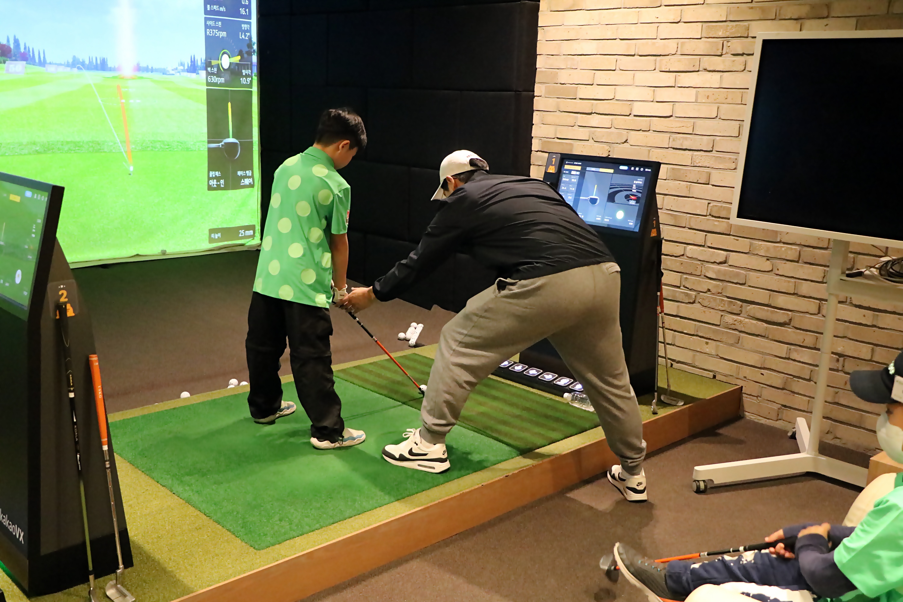 어드레스시 그립잡는 요령에 대해서 지도해 주고 있는 모습
