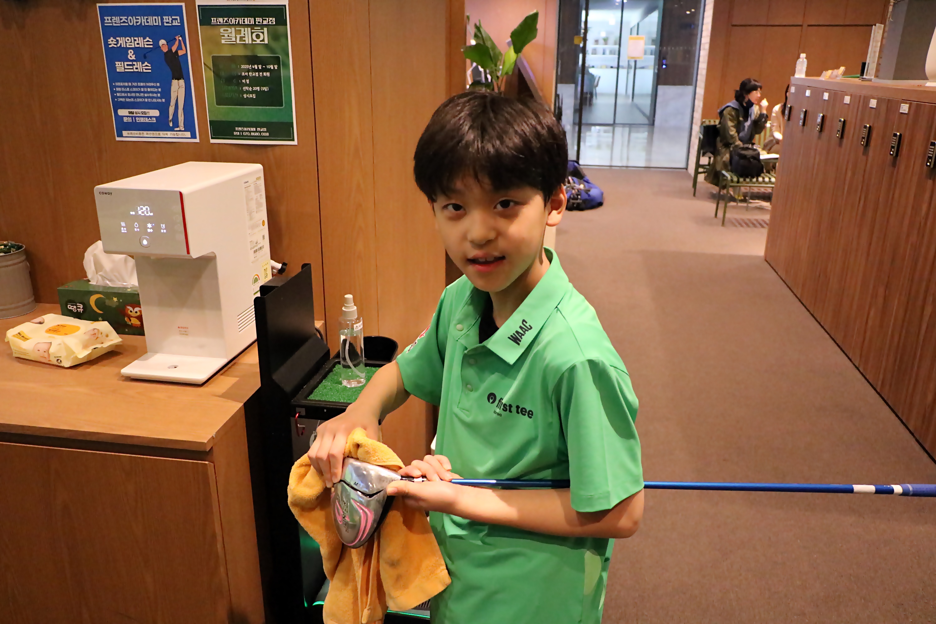 본인이 사용한 골프클럽을 올바르게 관리하는 법을 스스로 실천하고 있는 모습