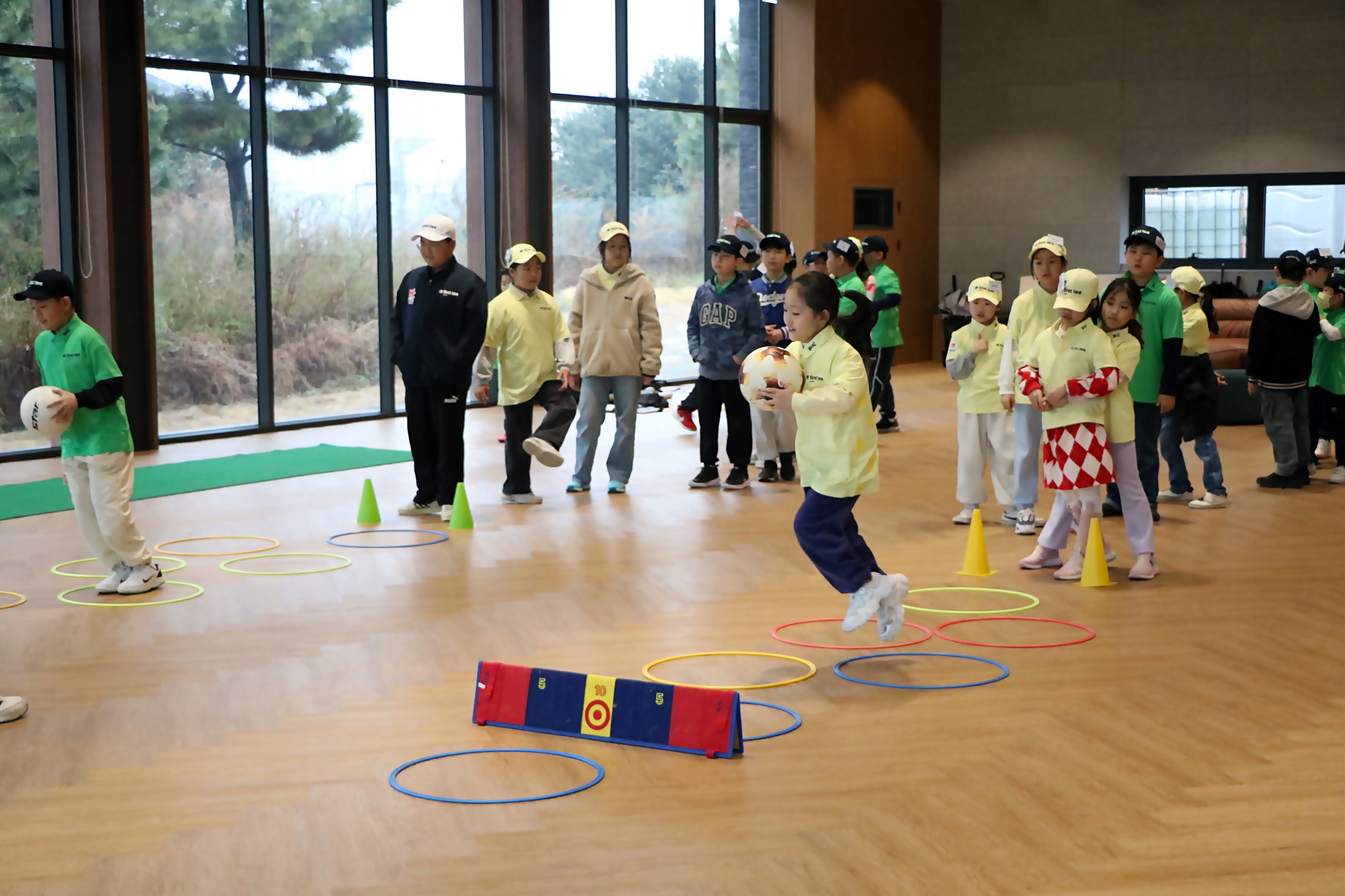 게임을 통해 서로 단결심과 협동하는 것을 익히고 있는 아이들