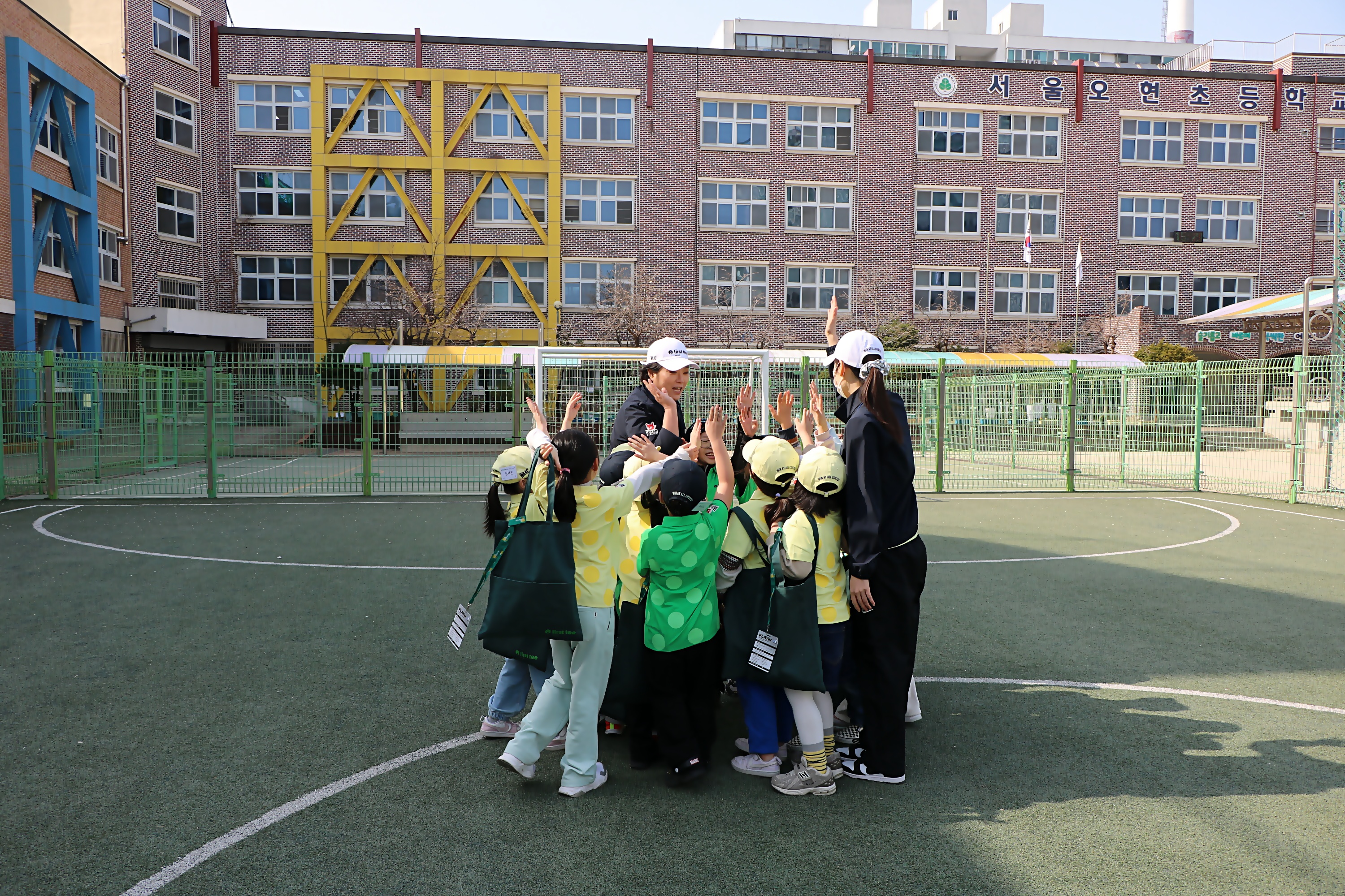 다음주 만날 것을 기약하며 퍼스트 티 화이팅을 외치며 오늘 수업을 마무리 하고 있는 아이들