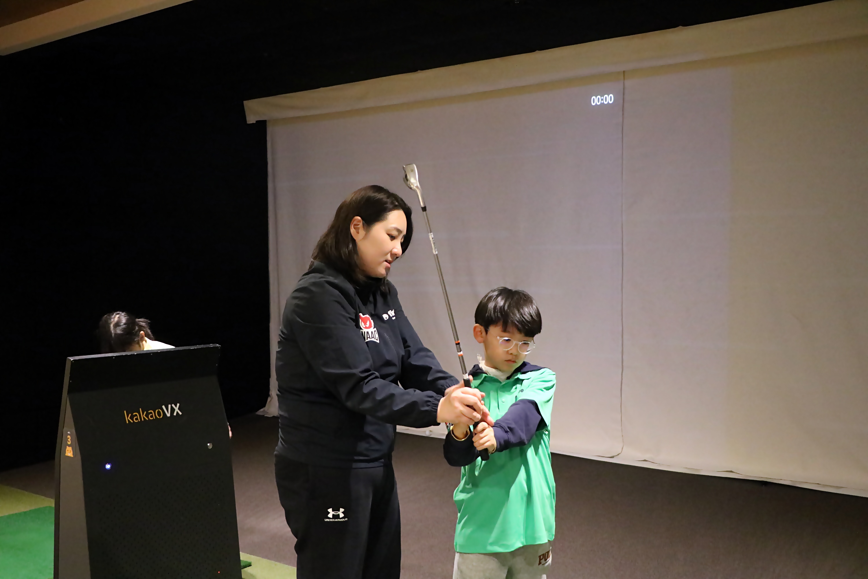 백스윙시 손목동작을 교정해 주고 있는 모습