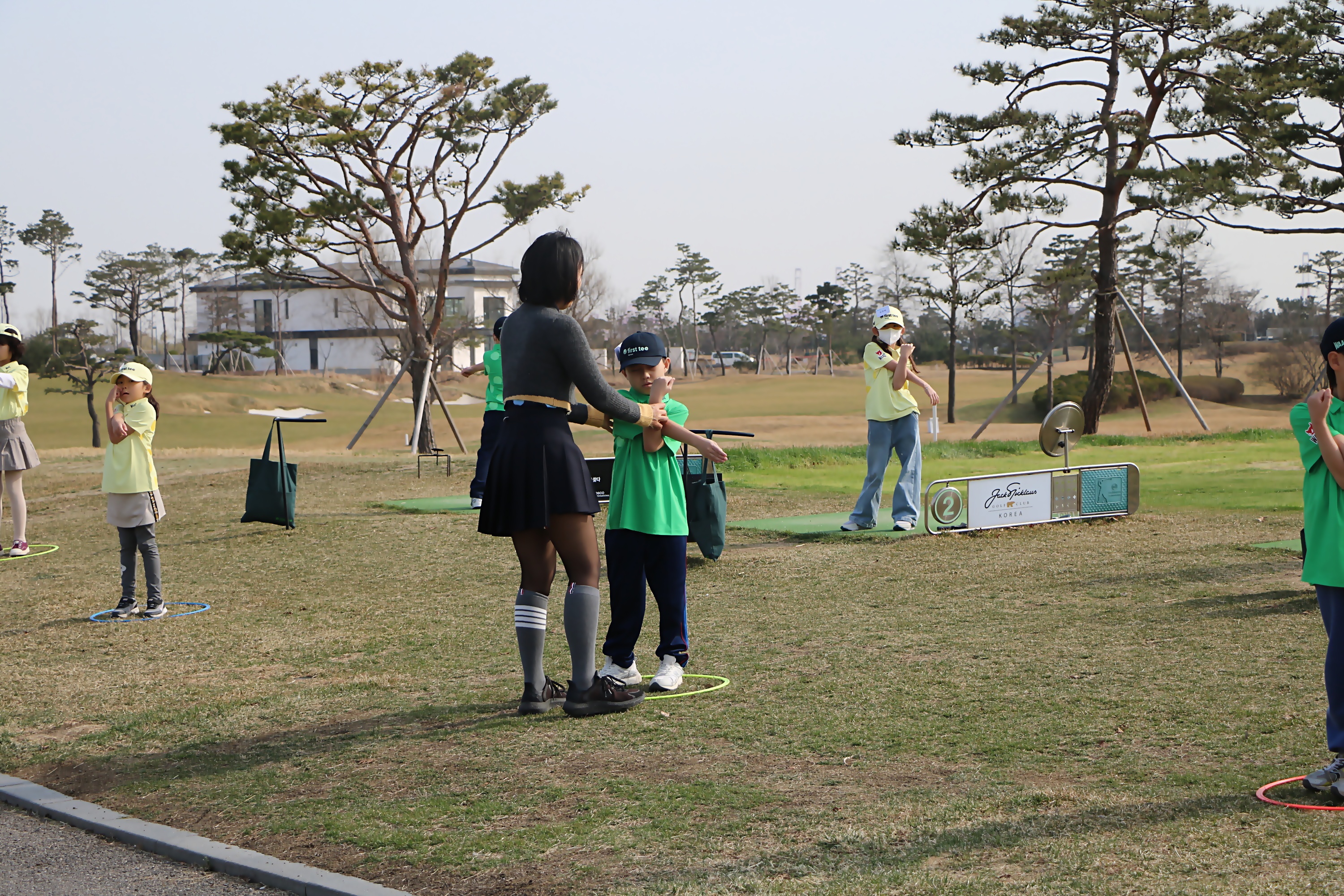 부상방지를 위해 정확하게 몸풀기 동작을 할 수 있도록 지도해 주고 있는 모습