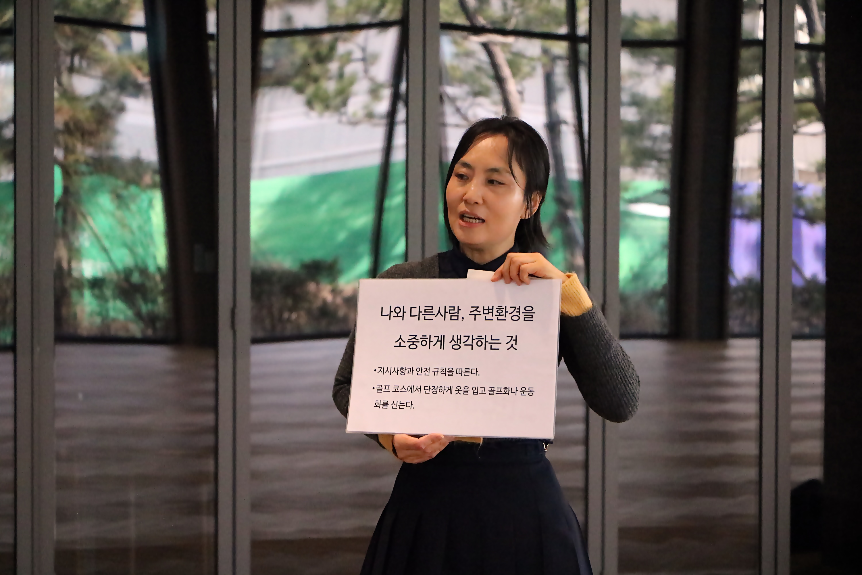 이번주 핵심가치 주제인 존중에 대해서 설명해 주고 있는 모습