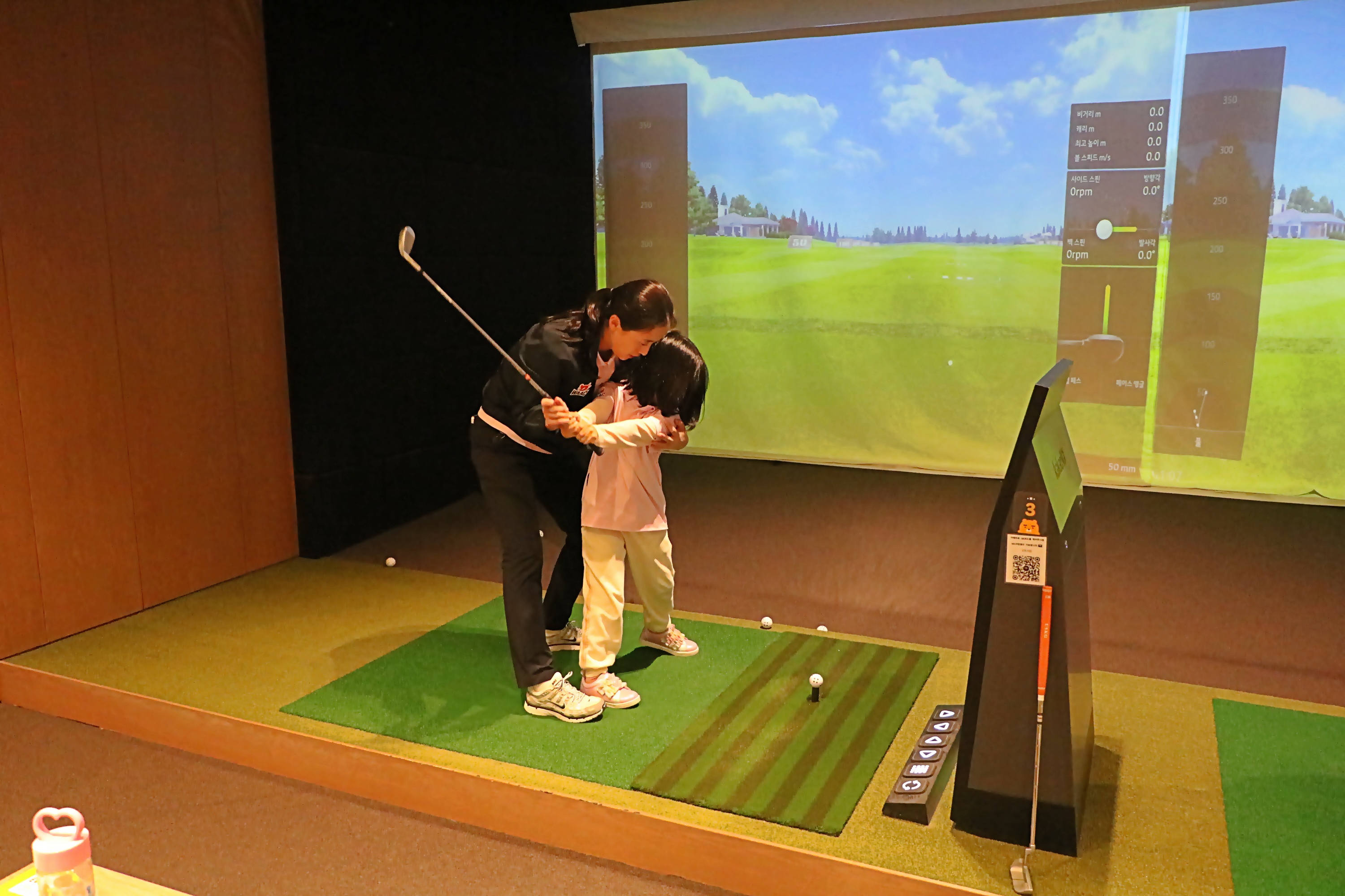 어깨회전이 부족한 백스윙 동작을 교정해 주고 있는 모습