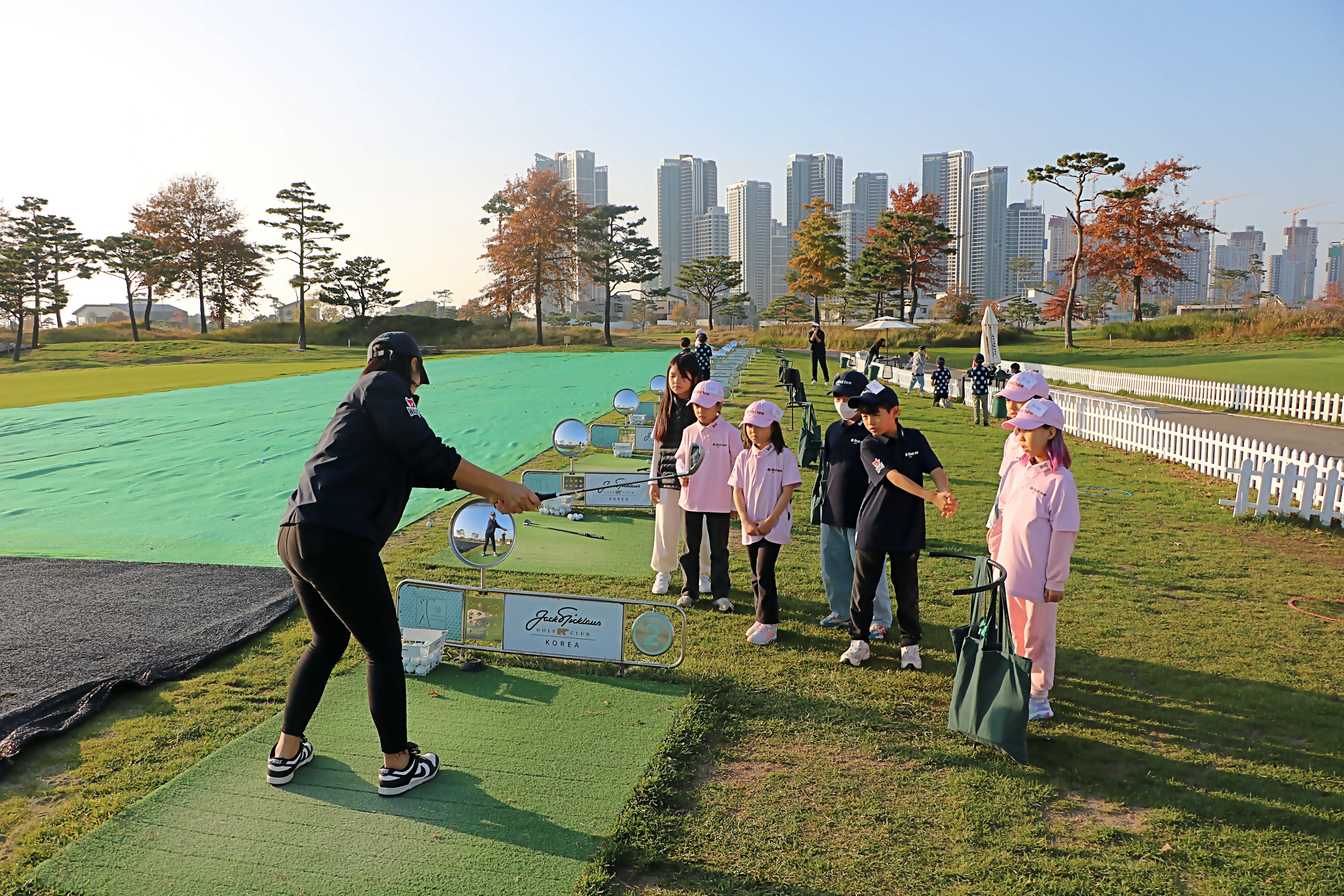 올바른 Y TO Y 스윙에 대해서 시범을 보여주고 있는 모습