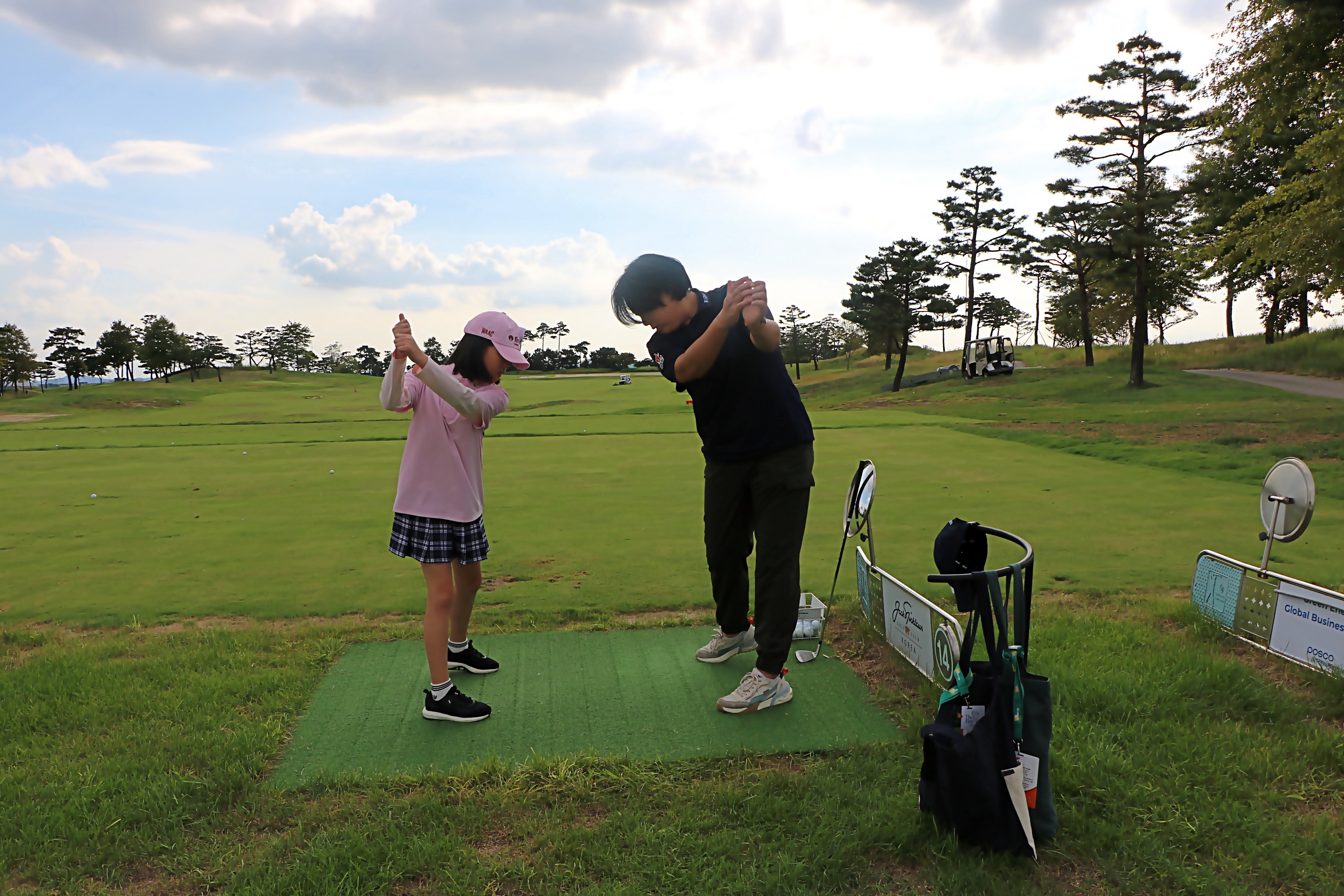 스윙리듬과 체중이동에 대해서 원포인트 레슨을 받고 있는 모습