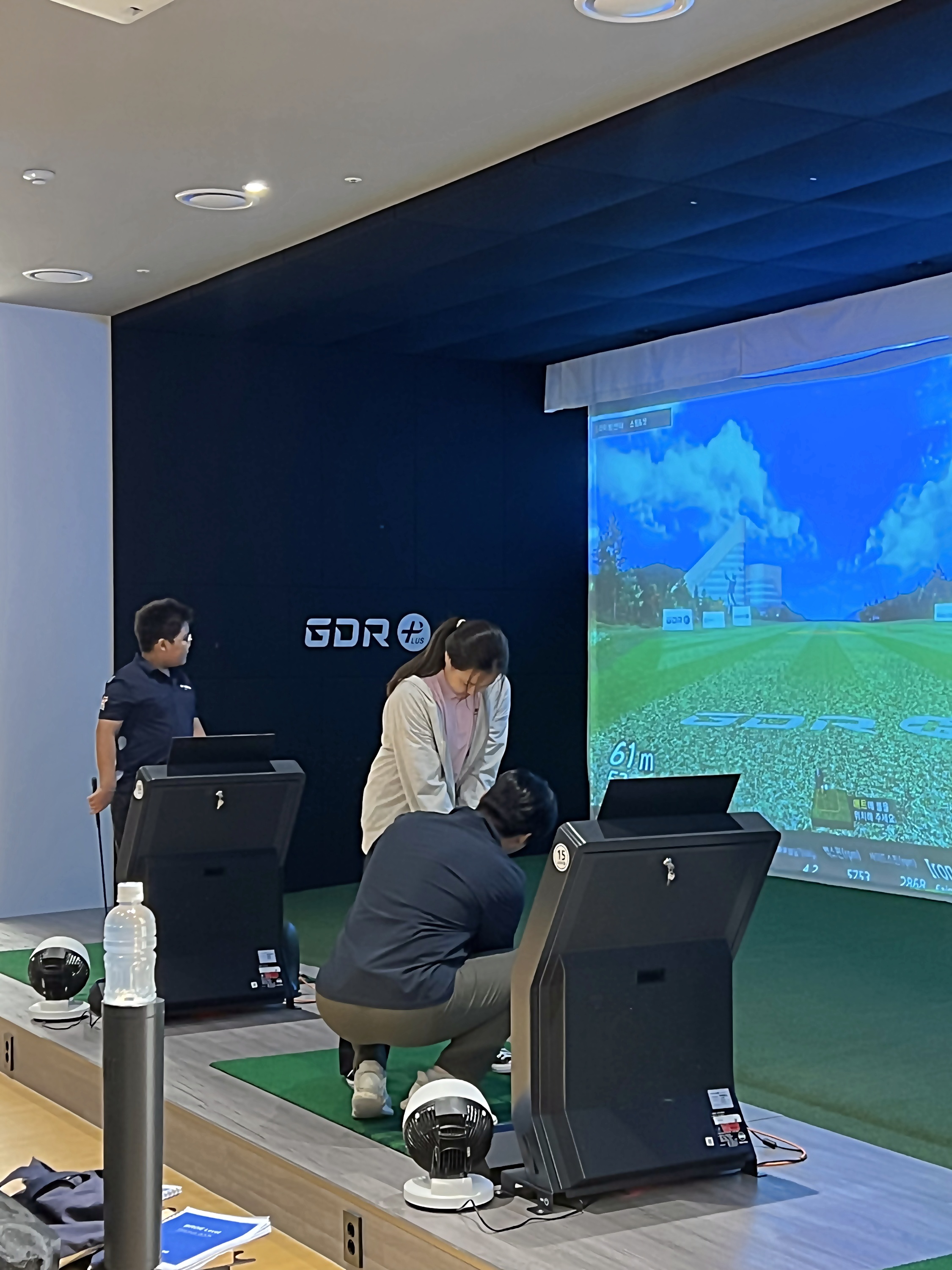 개인 연습을 하는 동안 그립 등 스윙시 나타나는 문제점을 바로 바로 고쳐주고 있는 모습
