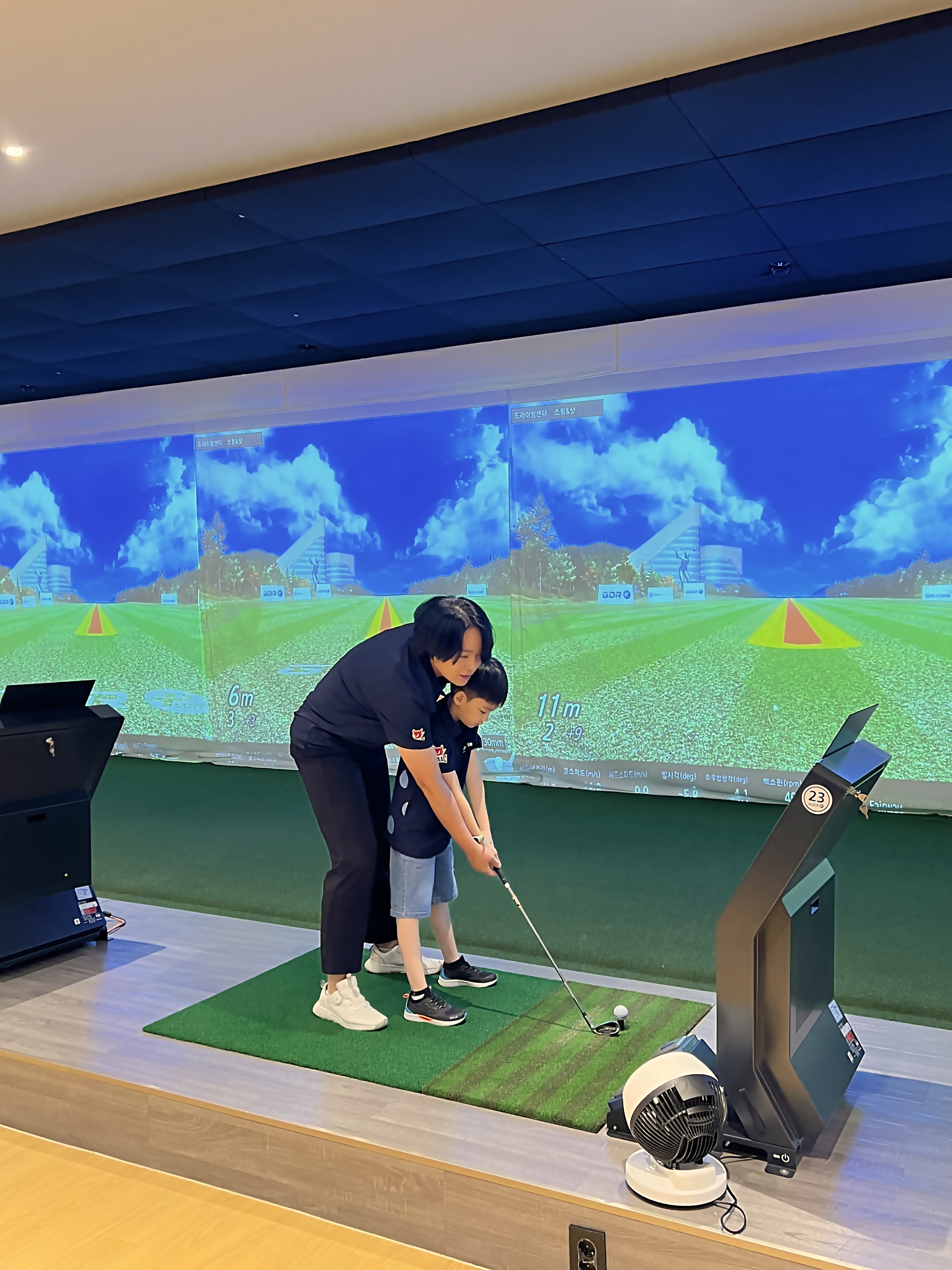 개별 연습시간 동안 돌아가면서 전체 교육생들의 스윙 자세를 교정해 주고 있는 모습