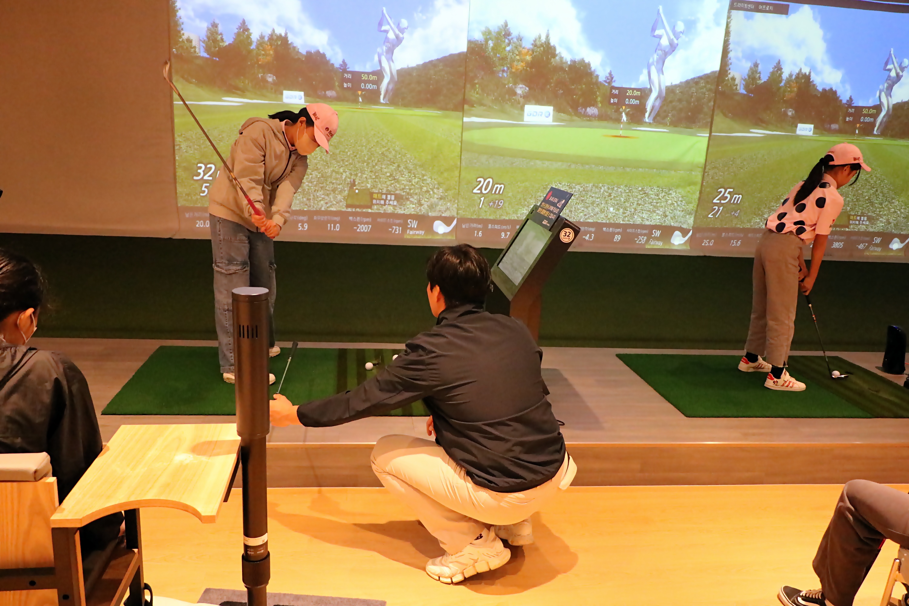 칩샷시 스윙궤도를 교정해 주고 있는 모습