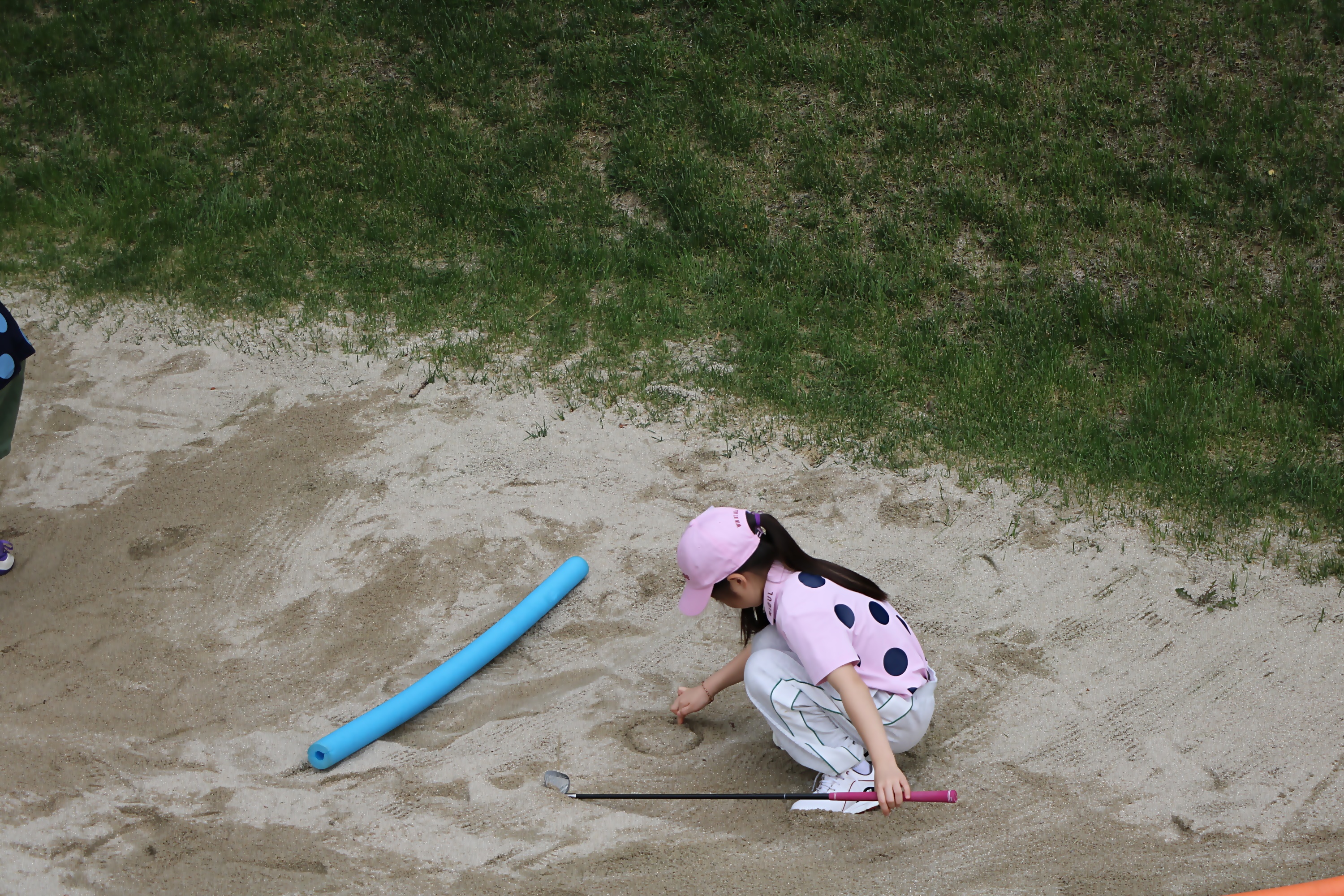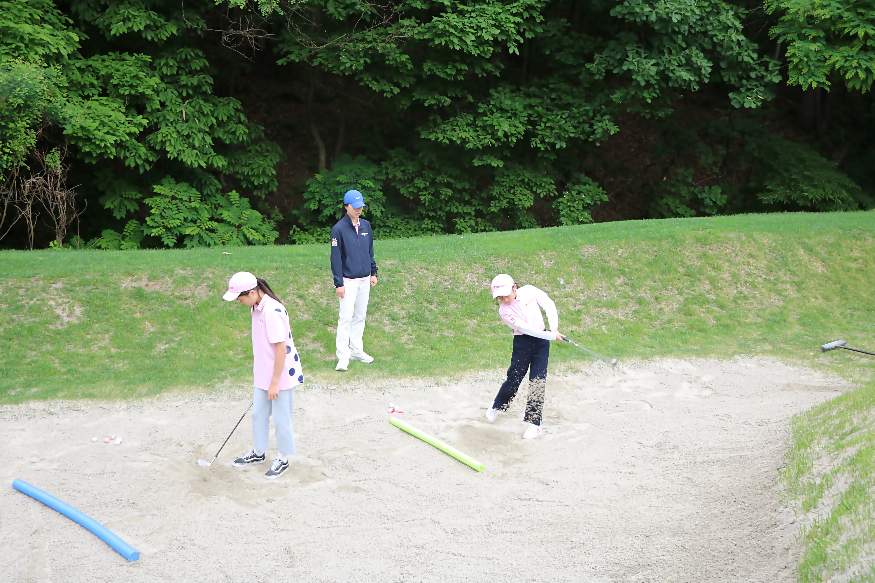 정해진 구역 안에서 벙커샷을 연습하고 있는 아이들