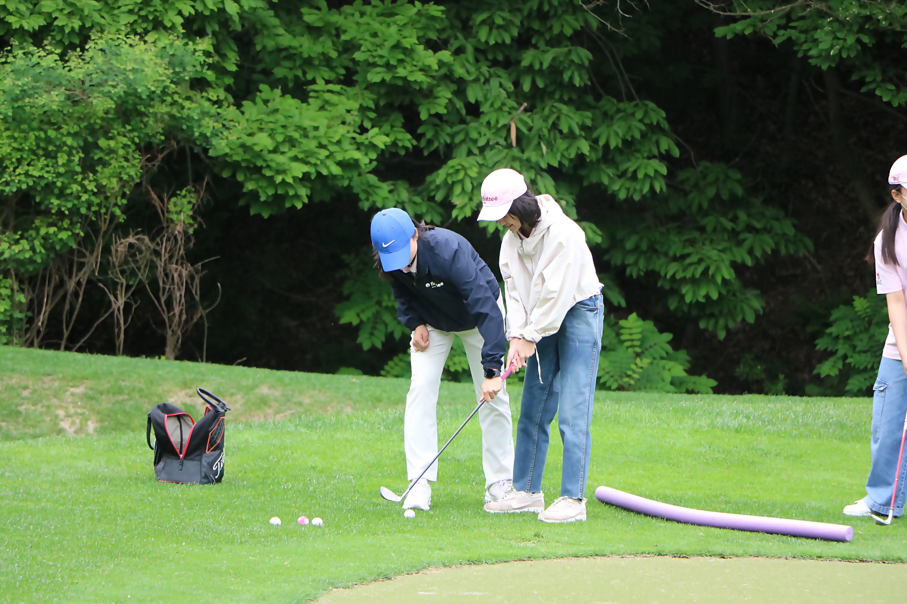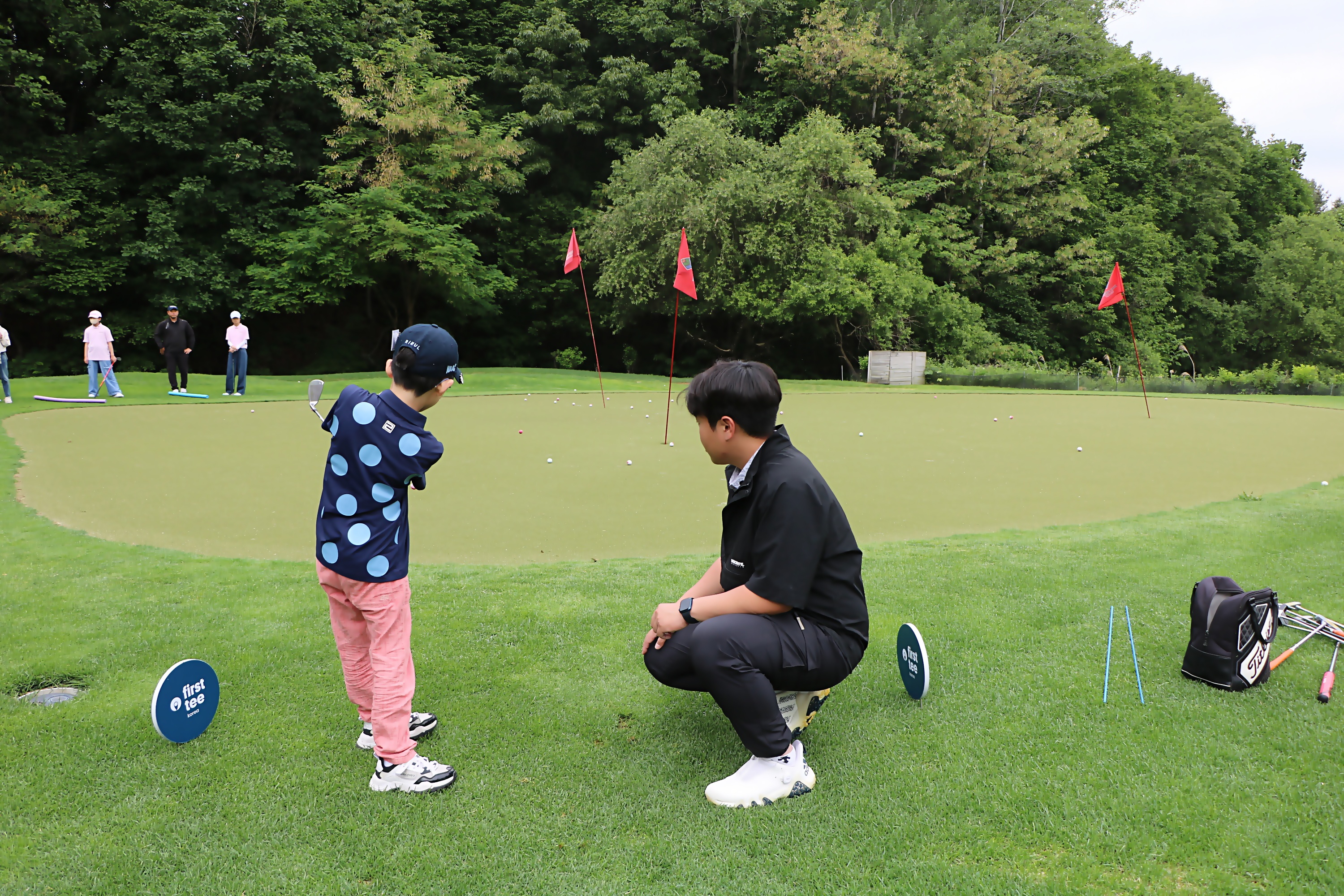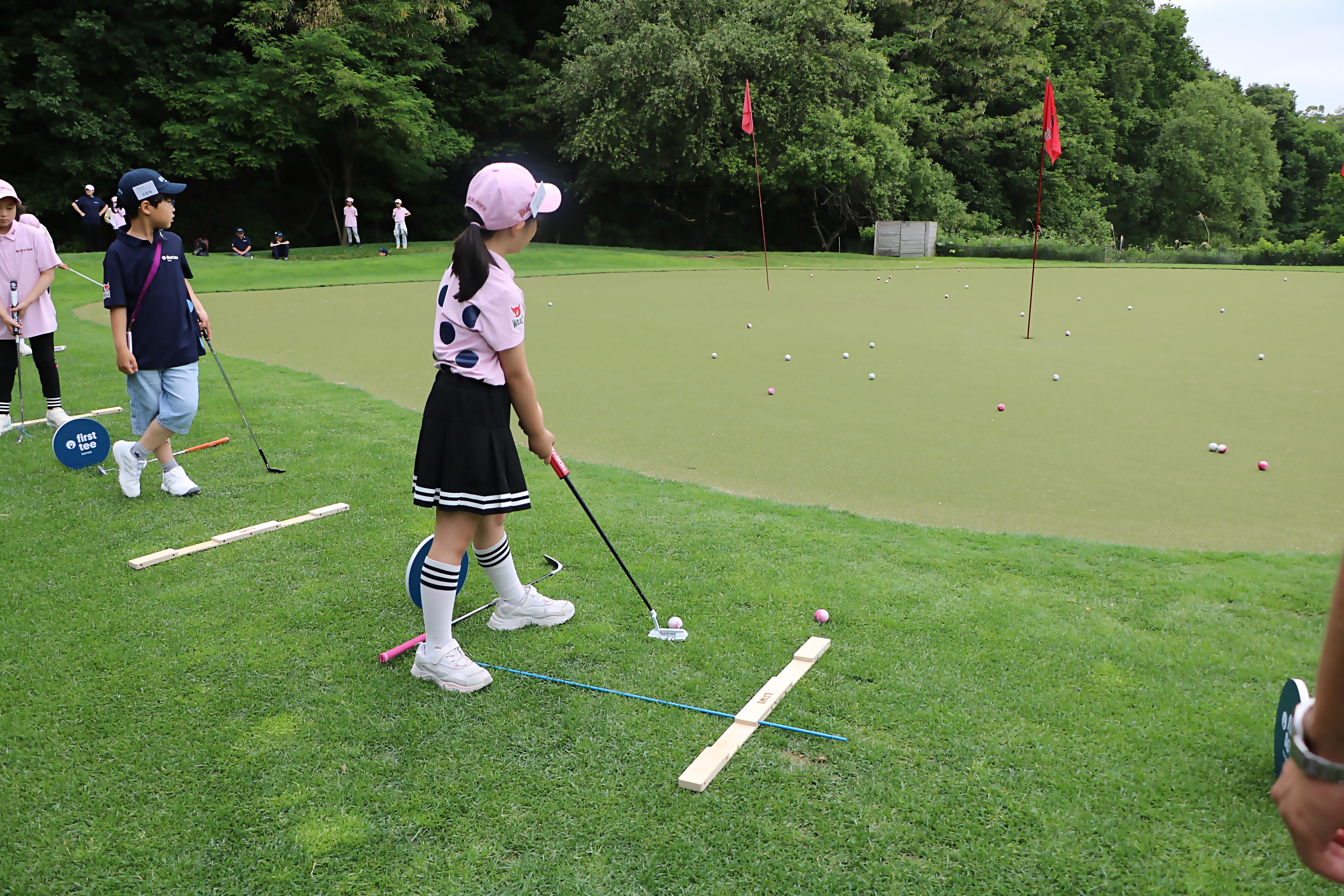 스코어를 줄이는데 가장 중요한 골프기술 중 하나인 숏게임을 배우고 있는 모습
