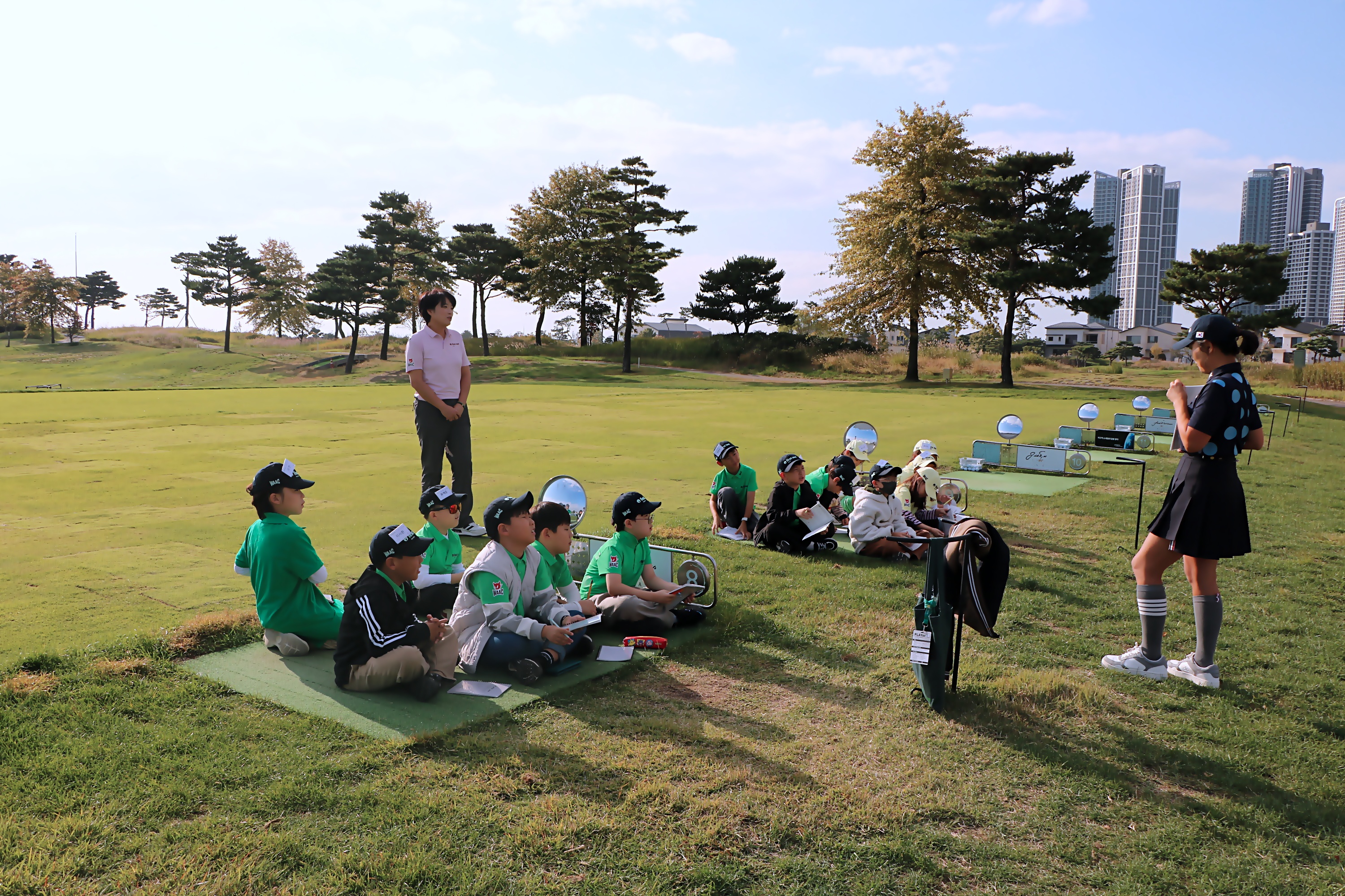 건강한 습관 및 골프코스명칭 등에 대해서 설명해 주고 있는 모습