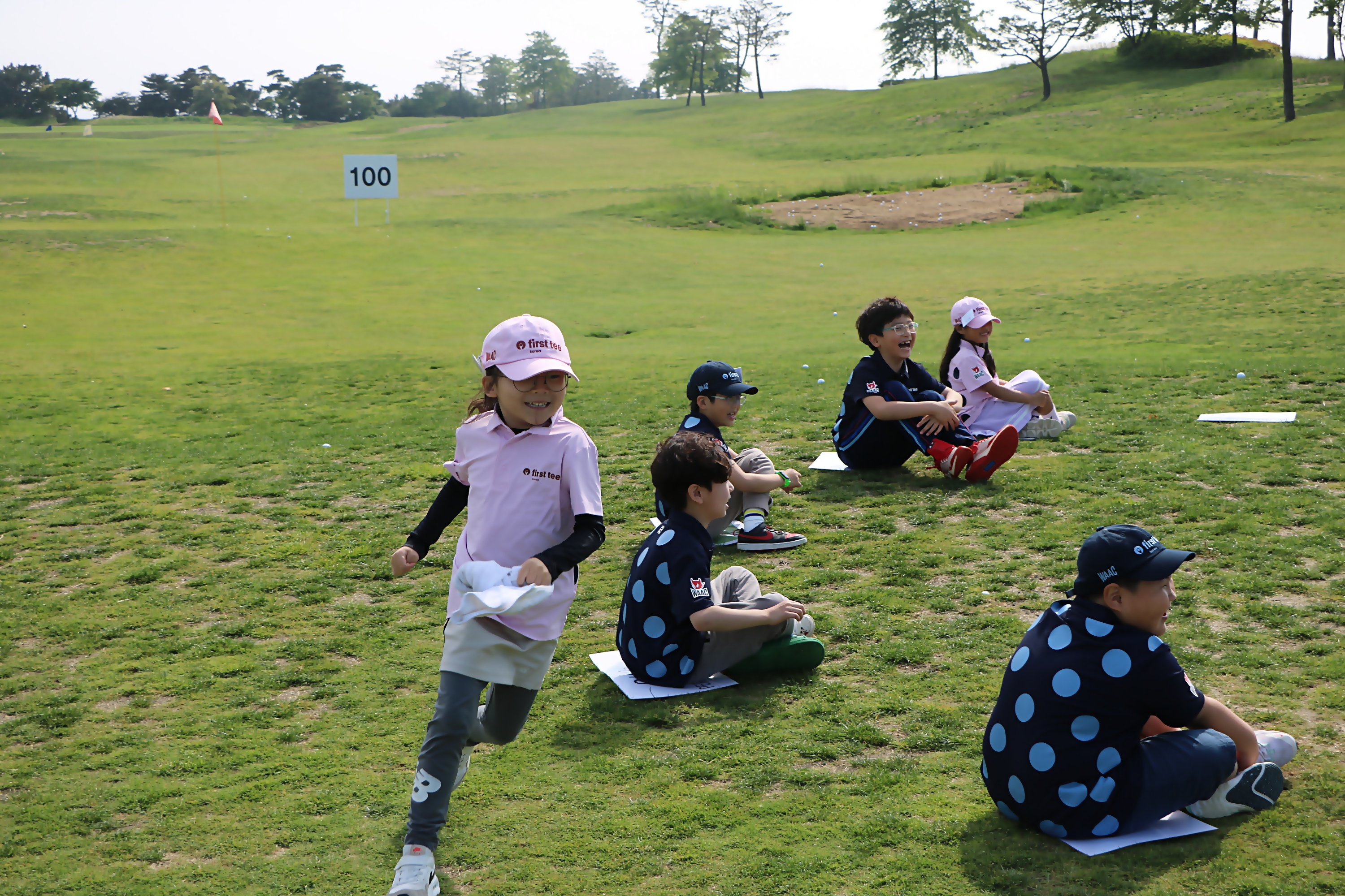 수건돌리기를 통해 달리기를 하면서 몸을 풀고 있는 아이들