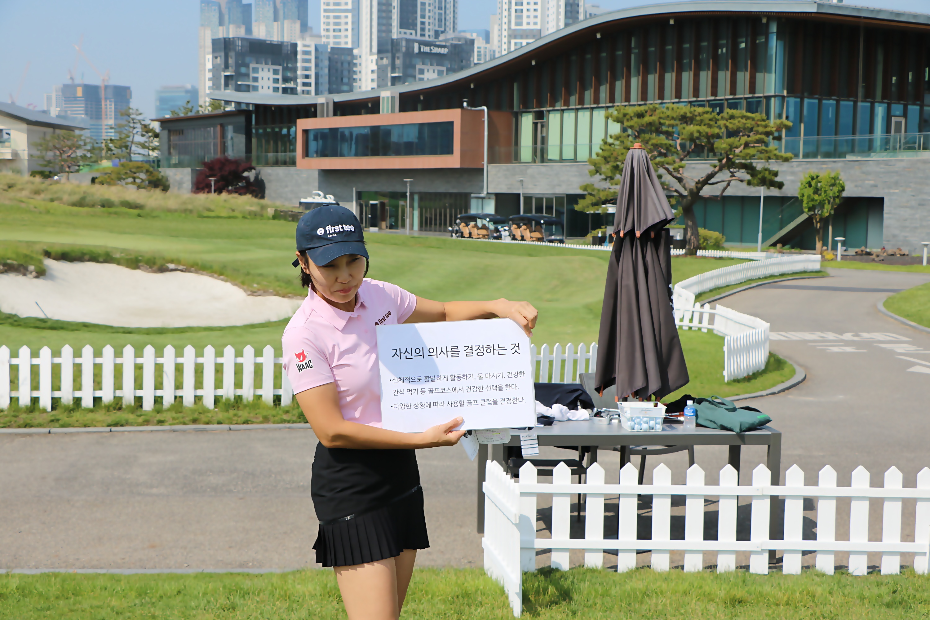 골프할 때 가져야 할 올바른 판단력에 대해서 상세히 설명해 주고 있는 모습