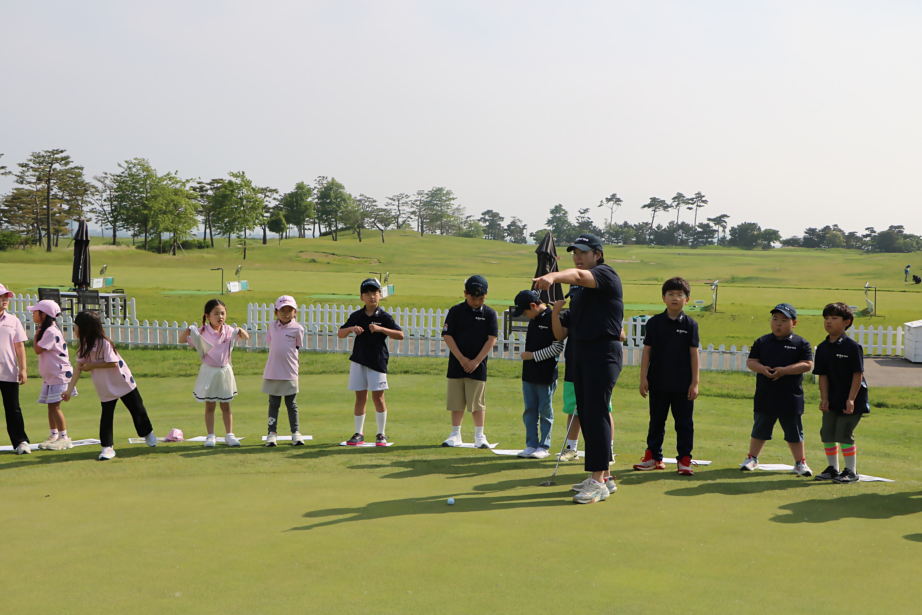 다음주 필드 수업을 앞두고 실제 그린에서 퍼팅하는 요령과 지켜야 할 주의사항에 대해서 설명해 주고 있는 모습