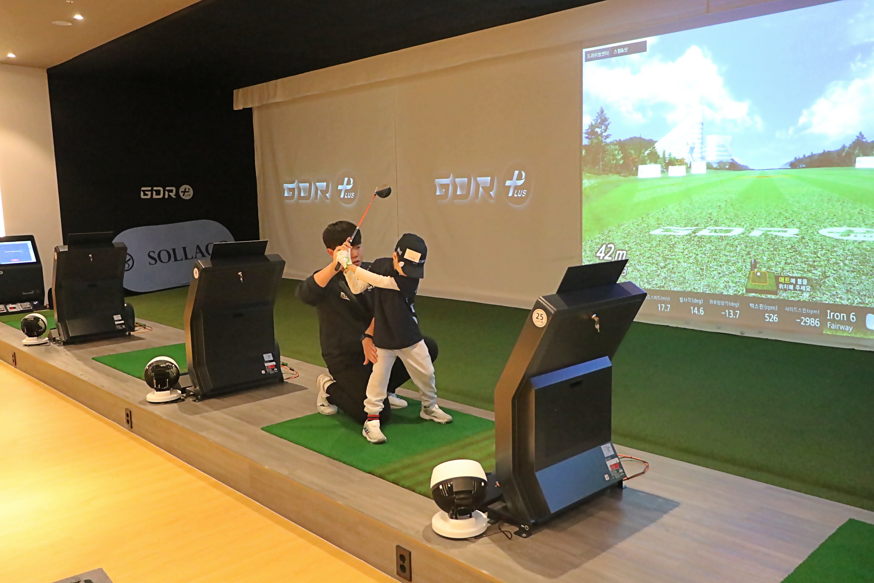 톱스윙 시 과도하게 오버스윙을 하지 않도록 교정해 주고 있는 모습