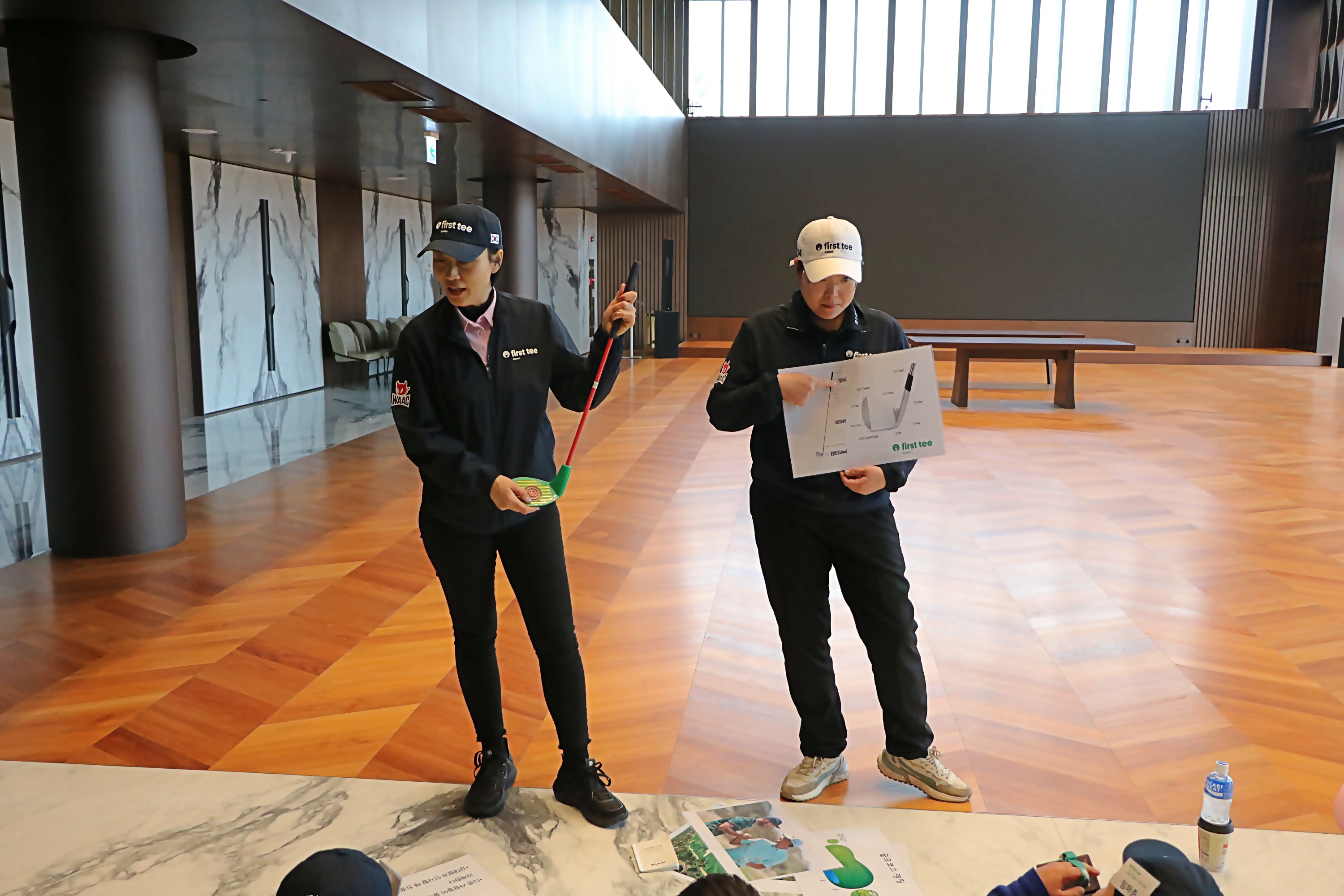 골프클럽의 부위별 명칭에 대해서 배우고 있는 모습