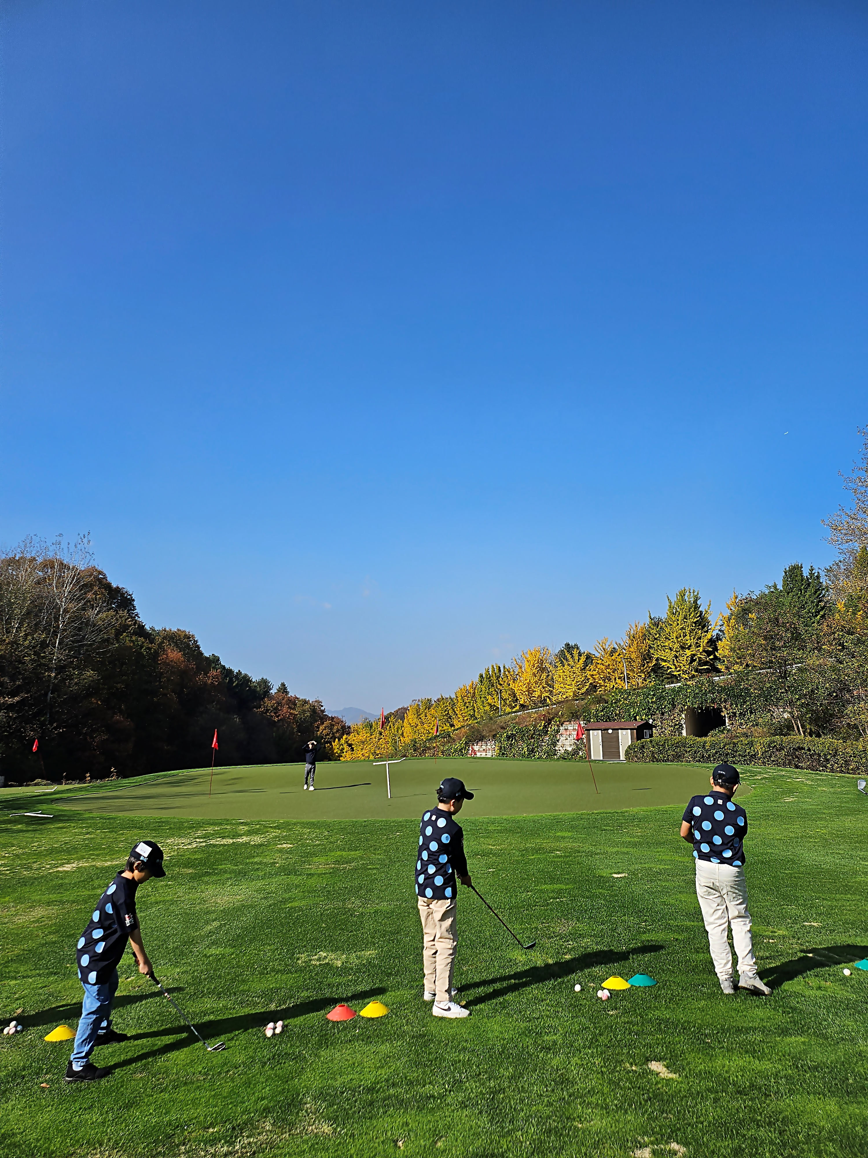 골프스코어를 줄이는데 가장 필요한 기술 중 하나인 숏게임을 향상시키기 위해 맹훈련 중인 아이들