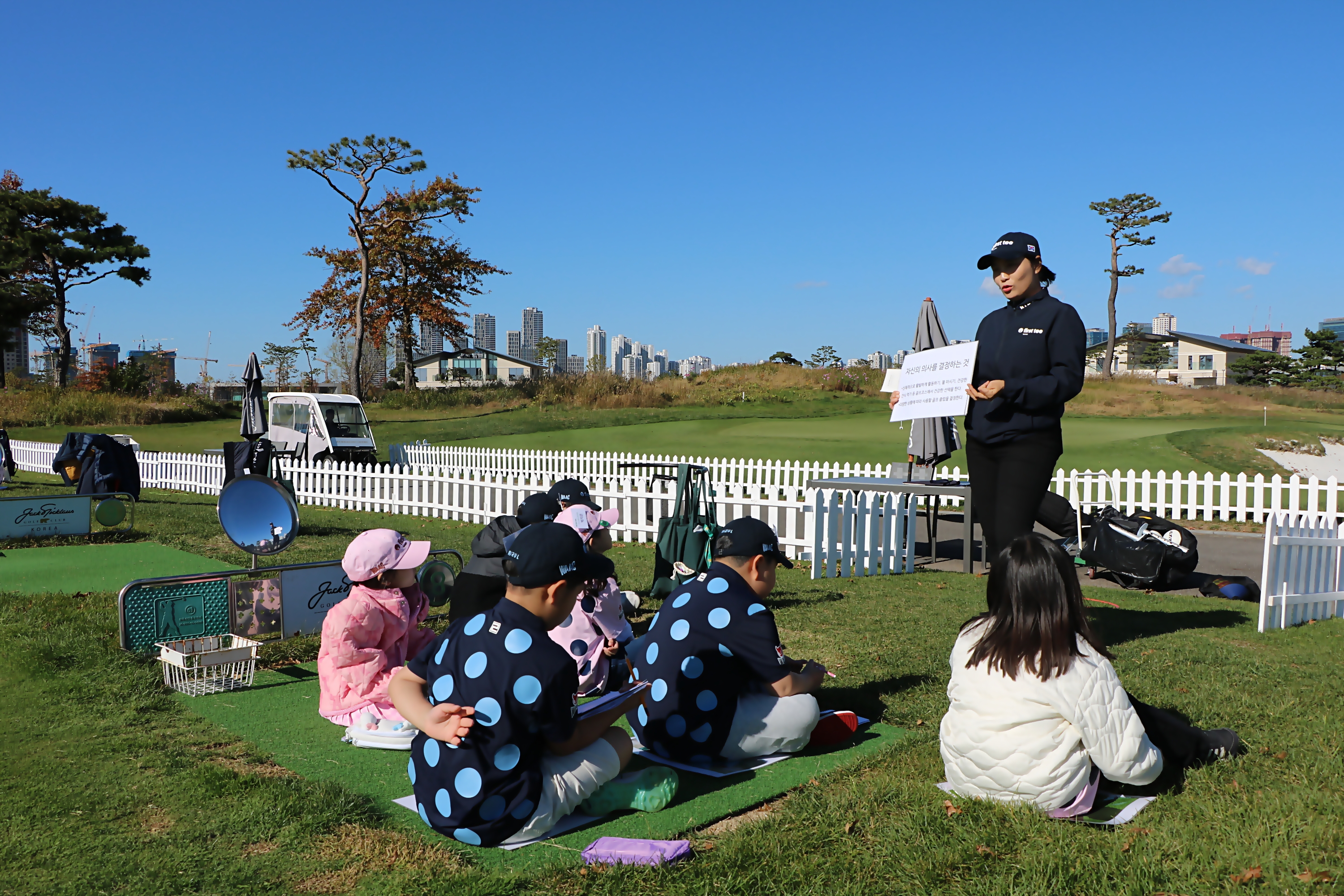 골프코스에서 올바른 판단력 갖기에 대해서 설명해 주고 있는 모습