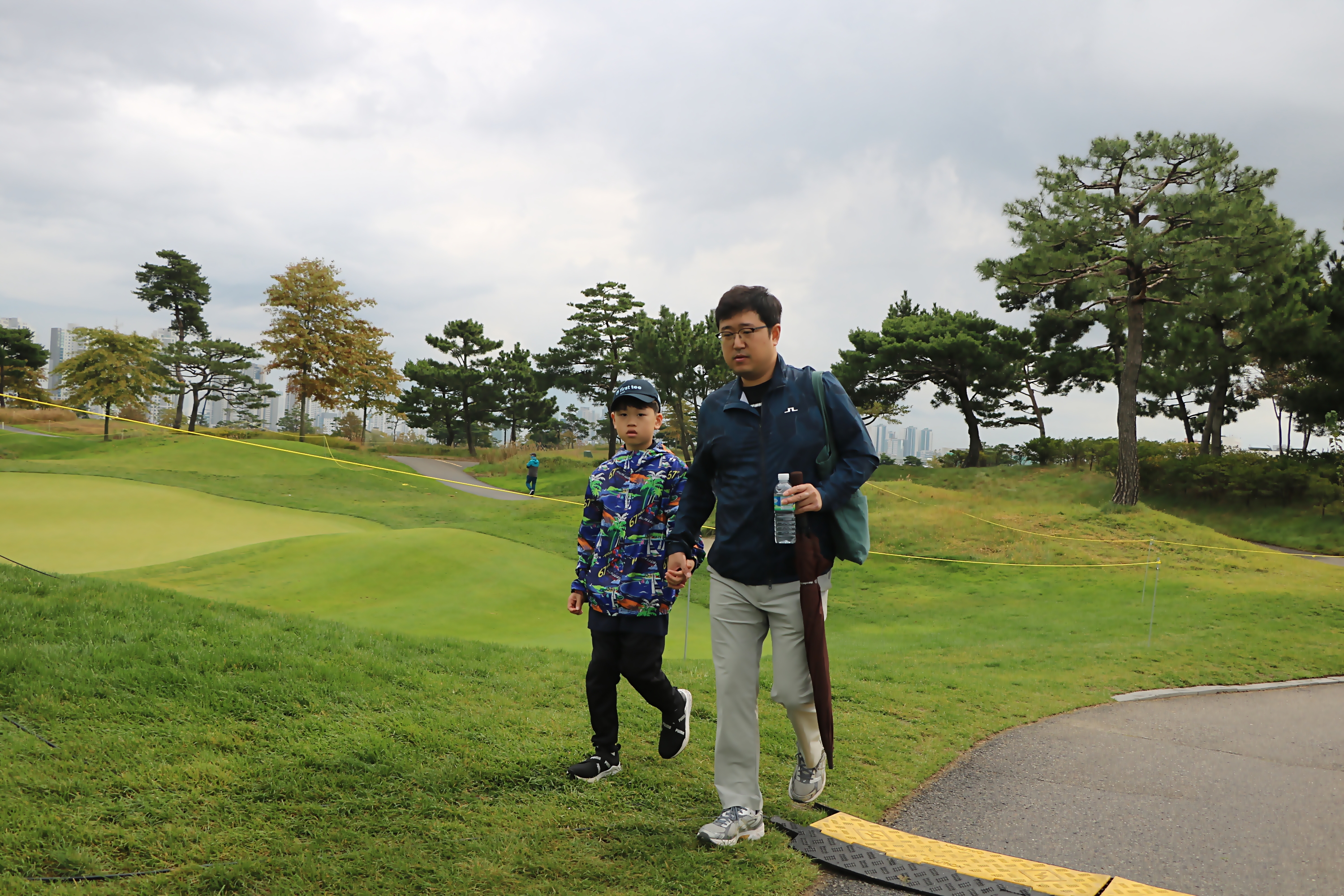 아빠와 다정하게 플레이하는 선수들을 따라 이동하는 교육생 모습