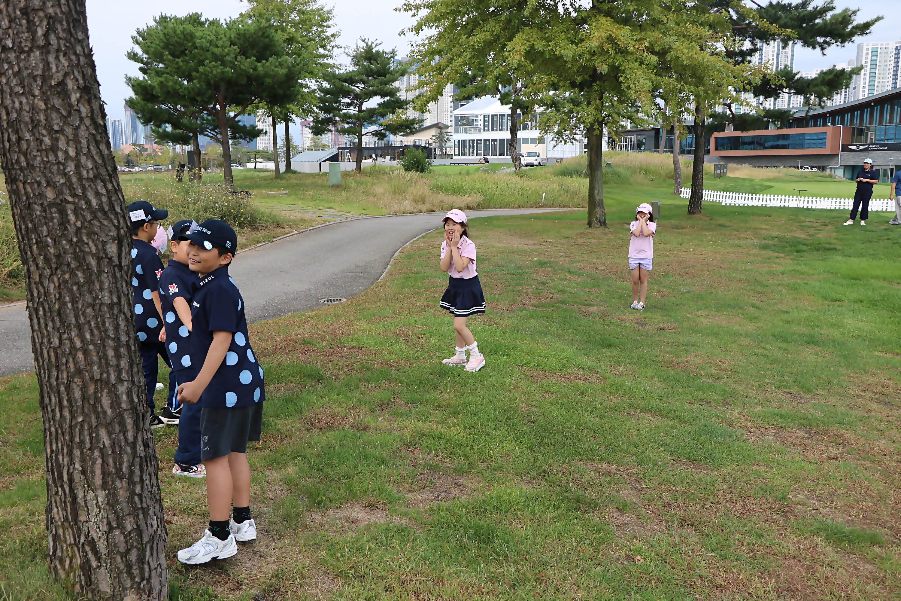 스트레칭 후 수업에 대한 집중도를 끌어올리기 위해 실시한 무궁화꽃이 피었습니다를 하며 즐거워하고 있는 아이들