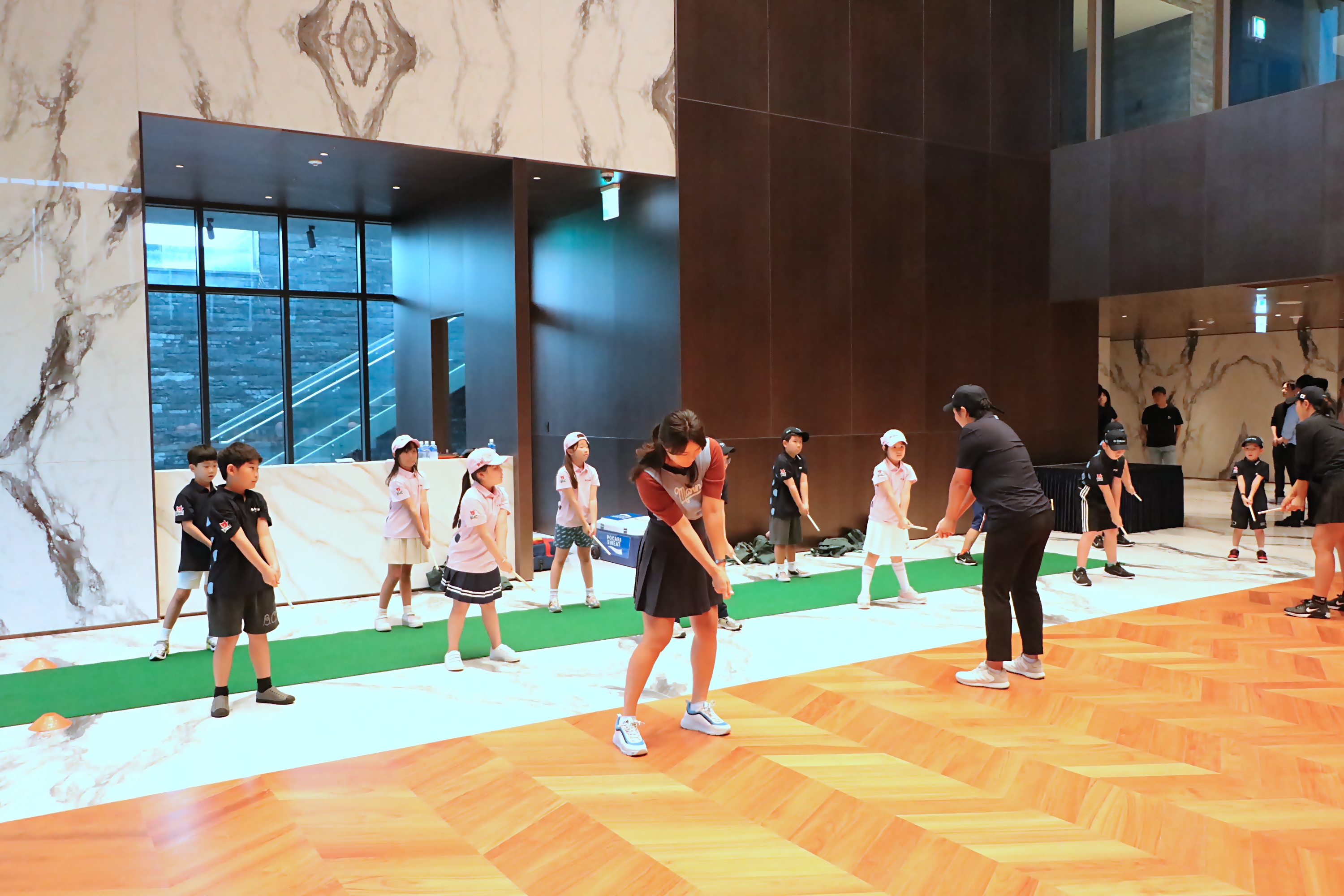 스윙을 구분동작으로 하면서 각 동작마다의 특징을 배우고 있는 아이들