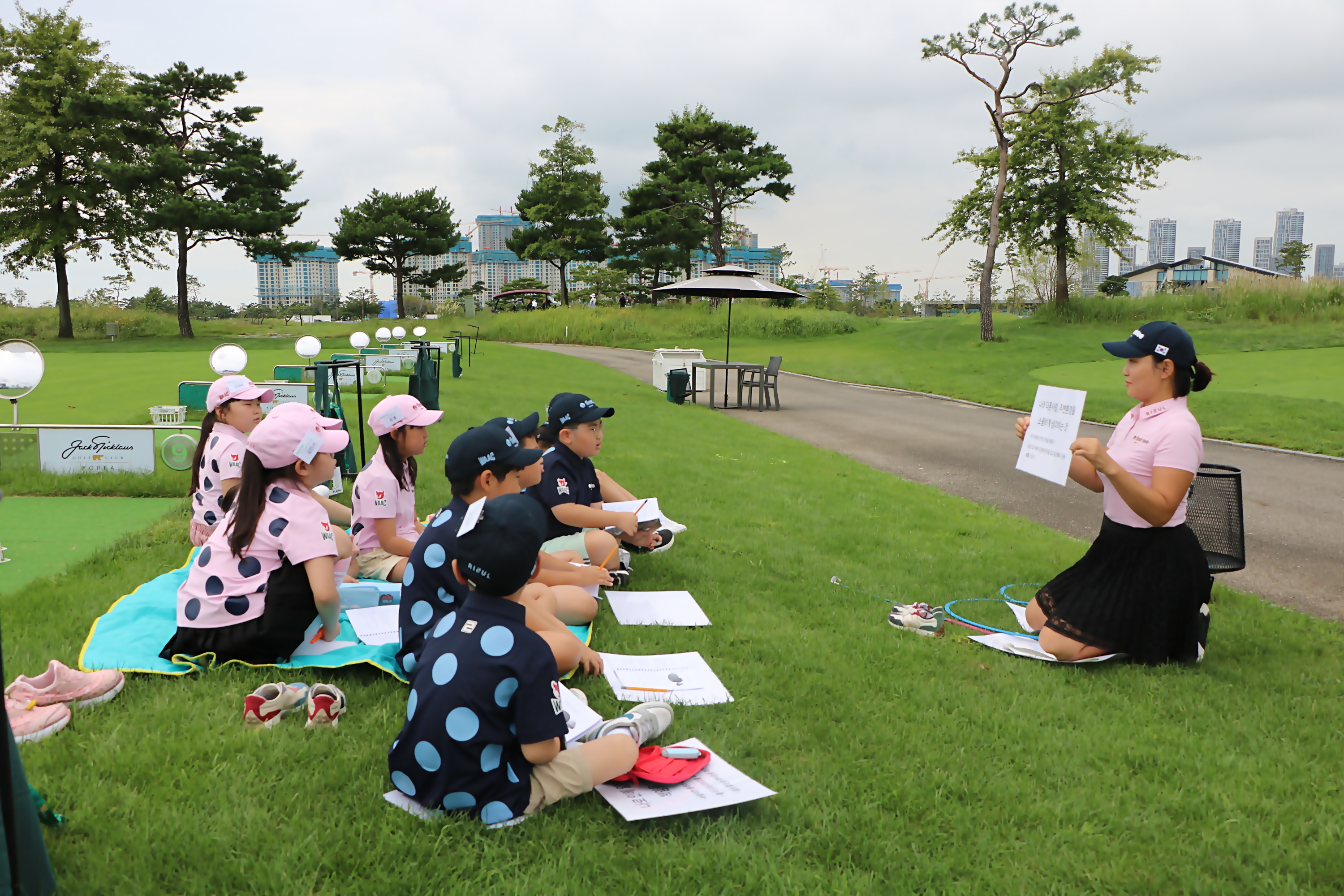 9가지 핵심 가치 및 골프에 대한 기초 이론을 배우고 있는 모습