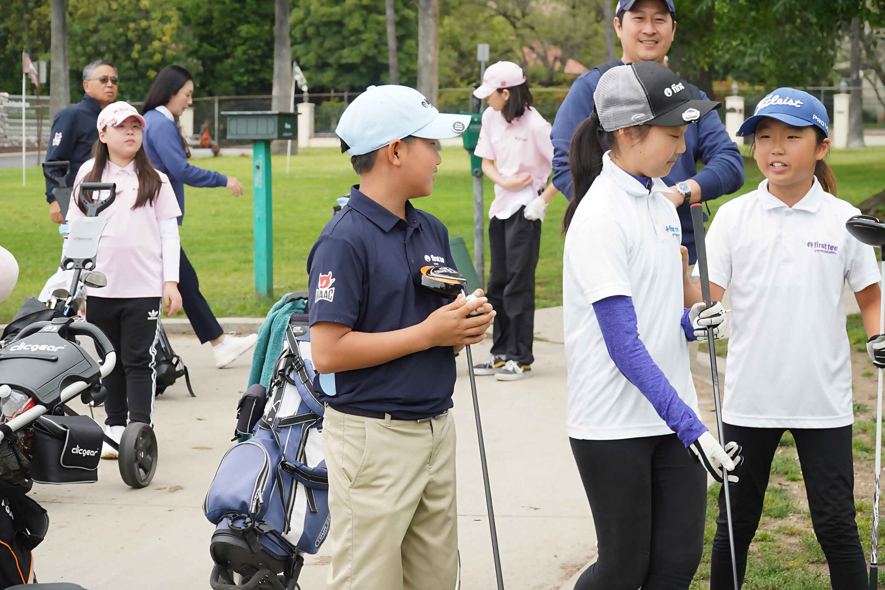 한,미 팀대항전을 하기 위해 1번홀에서 티샷할 준비를 하고 있는 모습