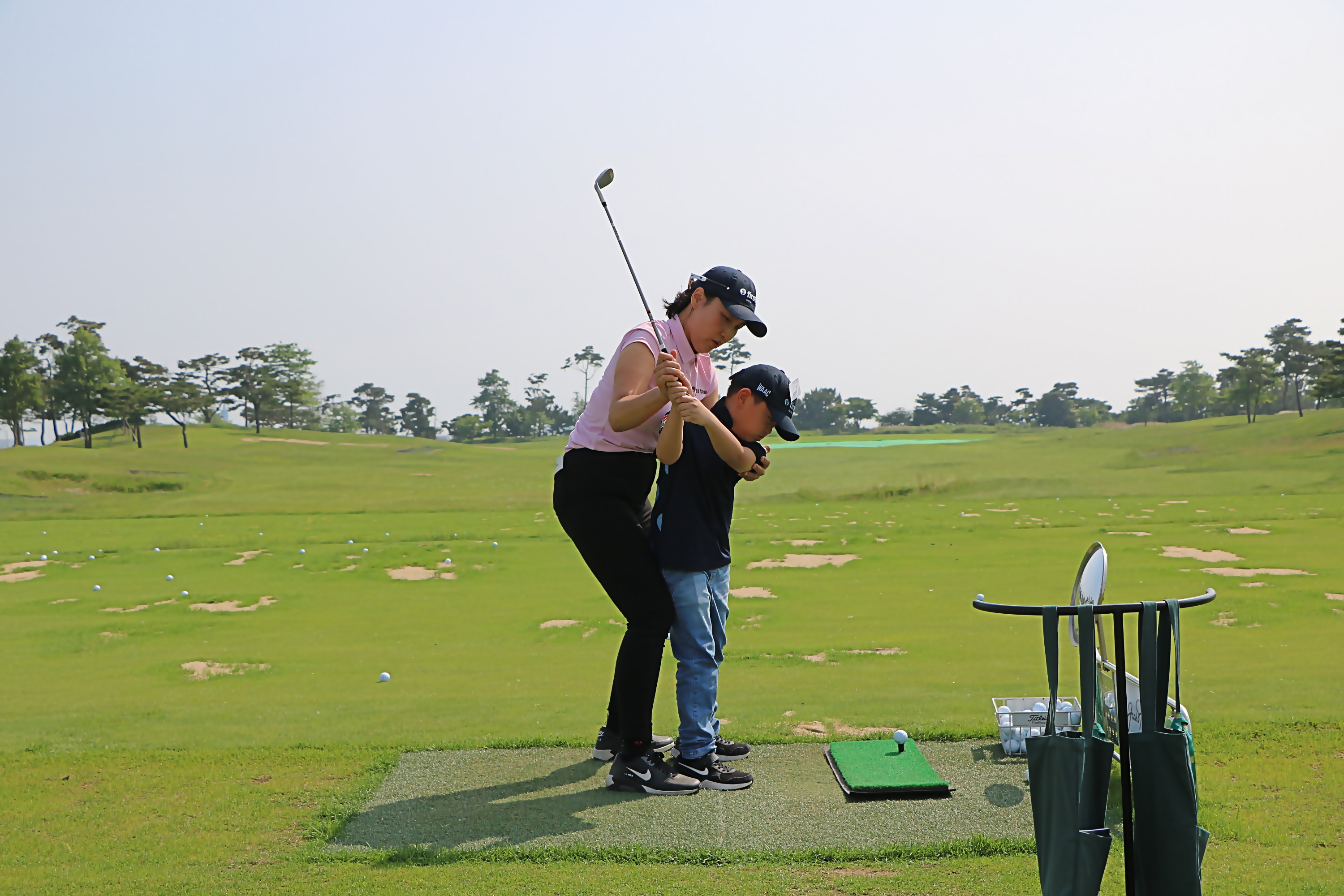 올바른 어깨 회전 요령에 대해서 설명해 주고 있는 모습