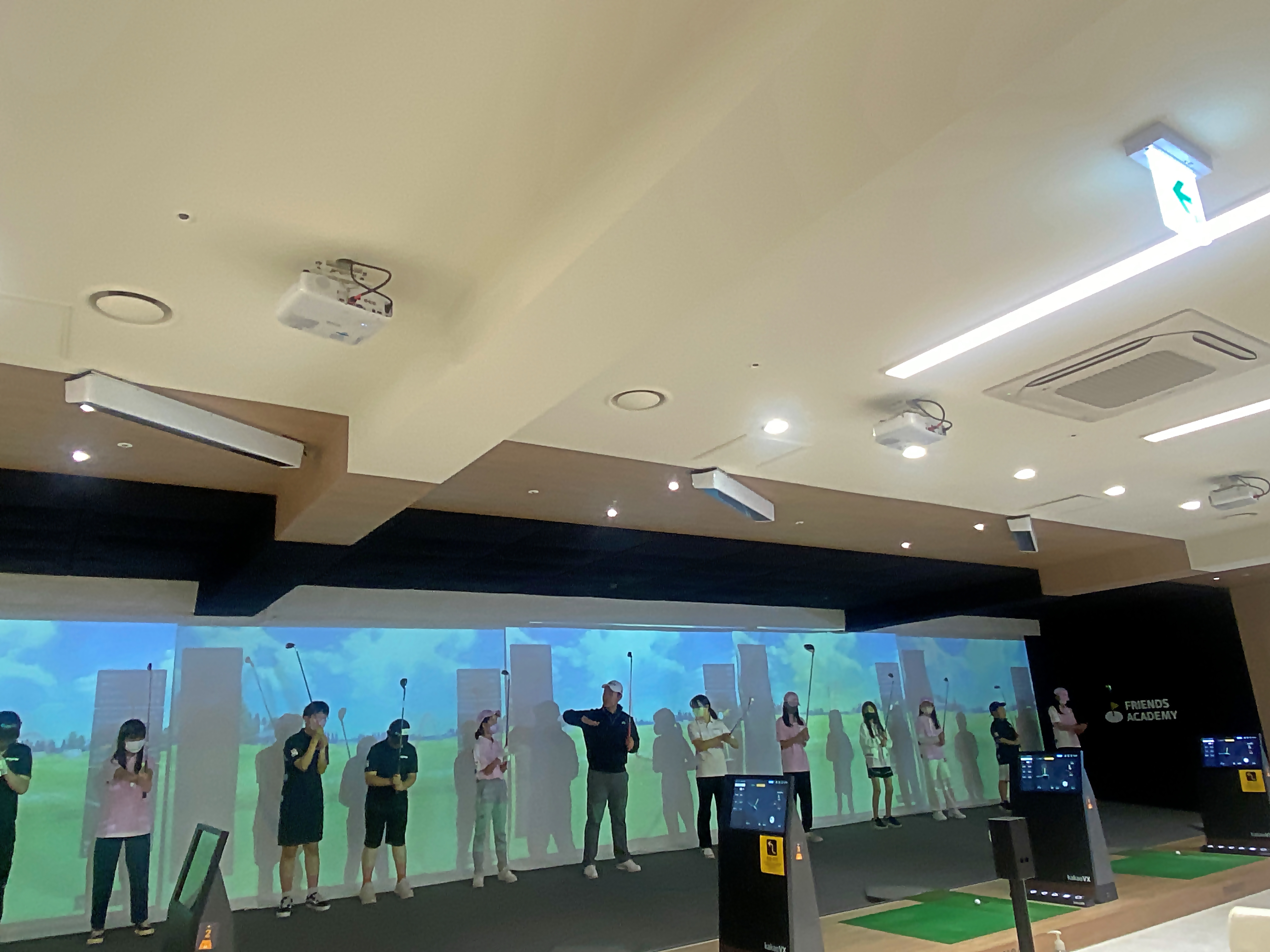 그립 잡는 법 및 목표방향에 맞게 에이밍 하는 요령을 배우고 있는 모습