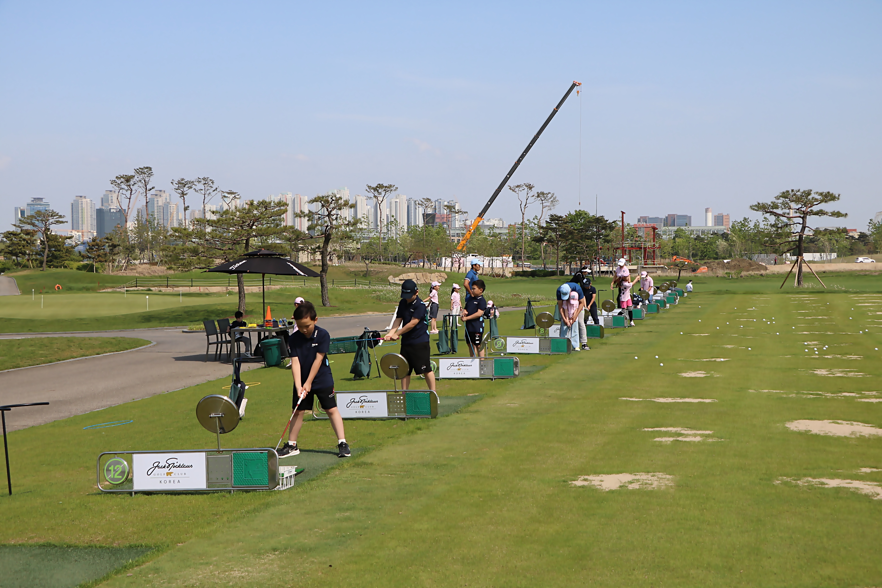 자율적으로 2인 1조로 골프실습을 하고 있는 아이들