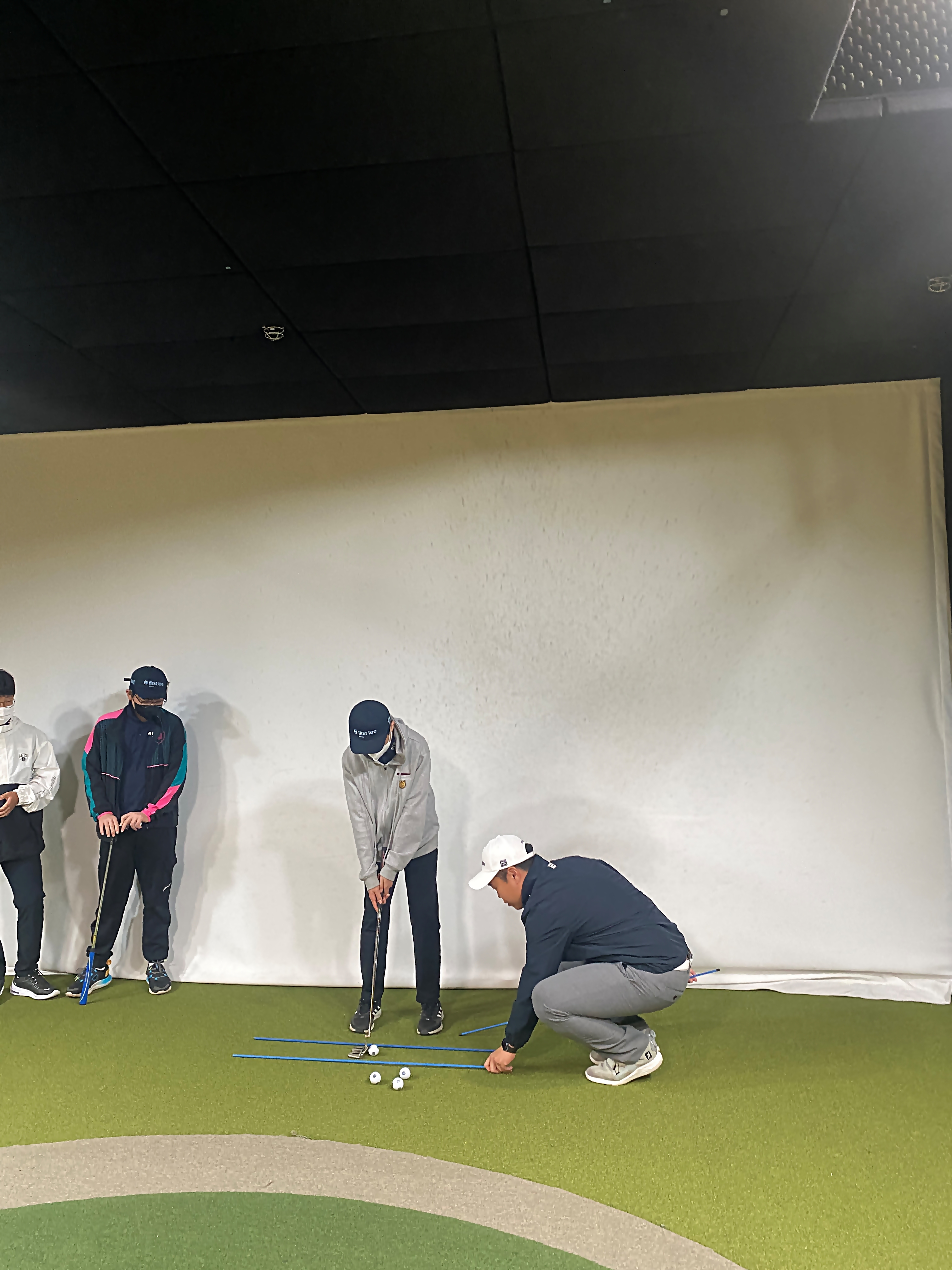 퍼팅시 올바른 스윙 궤도에 대해서 설명해 주고 있는 모습
