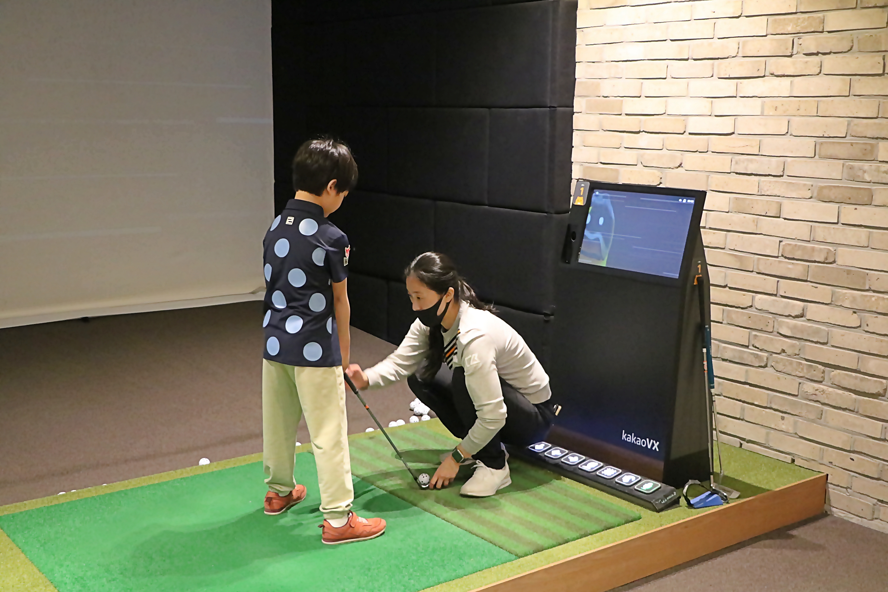 교육생에게 올바른 어드레스 자세를 설명해 주고 있는 김보경 코치님
