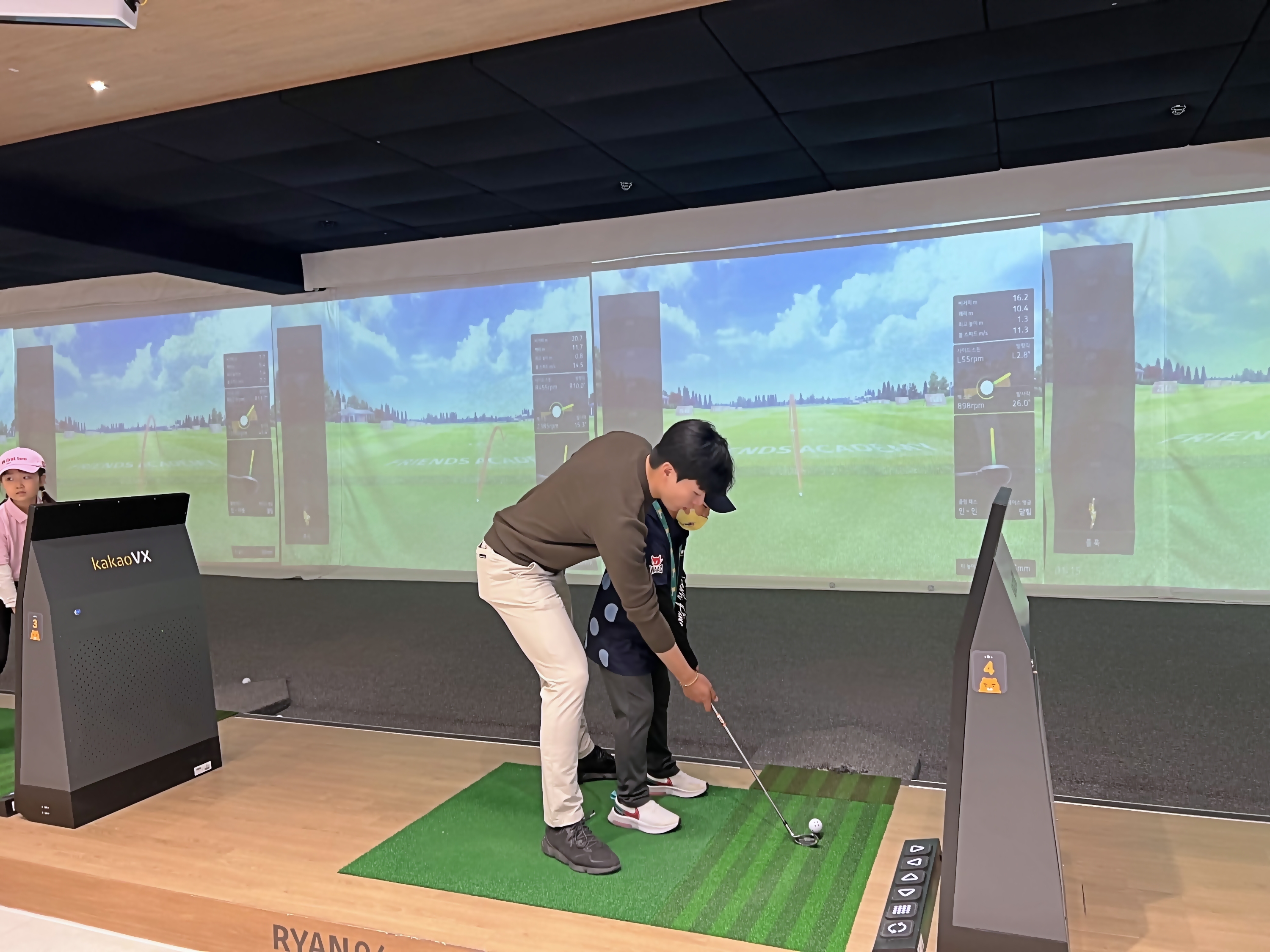 1:1로 어드레스 자세부터 자세히 설명해 주고 있는 코치들