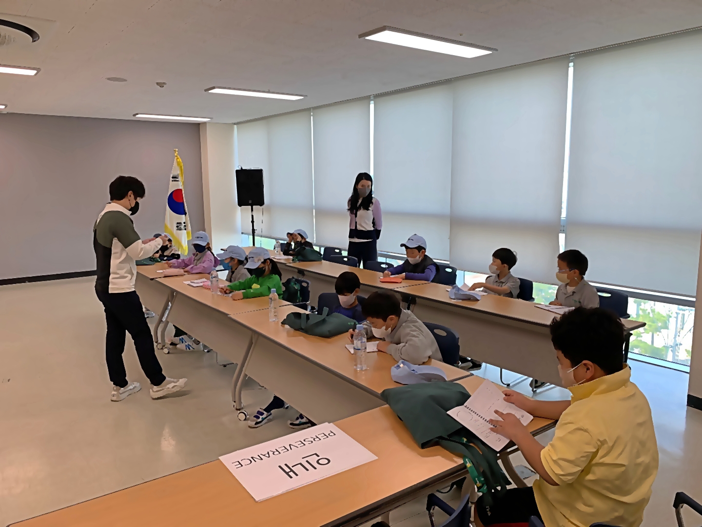 8주차 핵심가치 주제인 인내에 대해서 설명해 주고 있는 모습