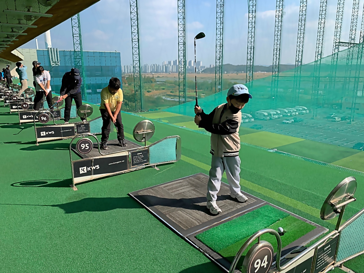 교대로 골프실습을 하며 점차 골프실력을 키워 가고 있는 아이들