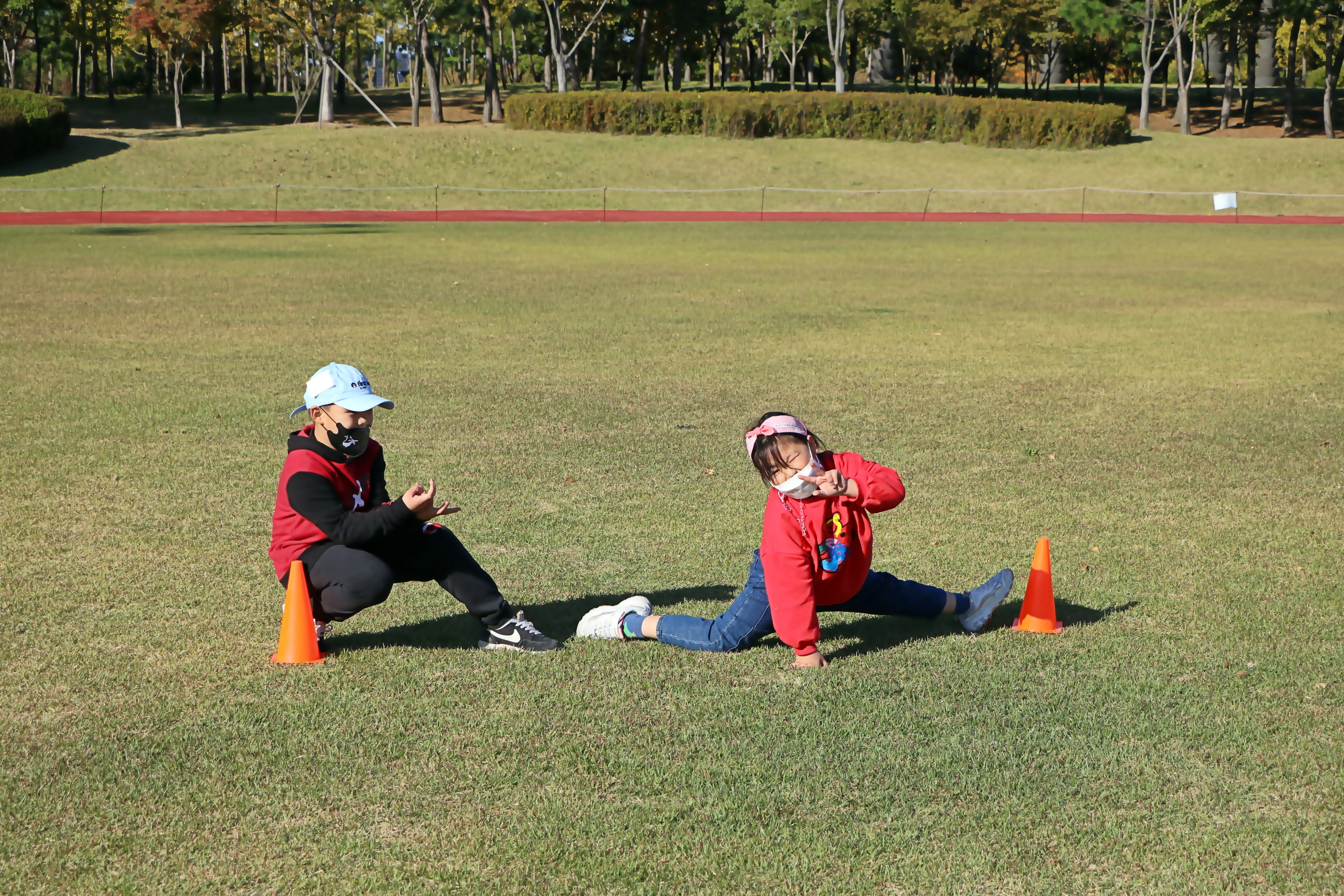 팀 대항 풋살경기를 하며 상대팀 형과 언니의 공격을 막기 위해 2명이 동시에 골키퍼로 나선 아이들