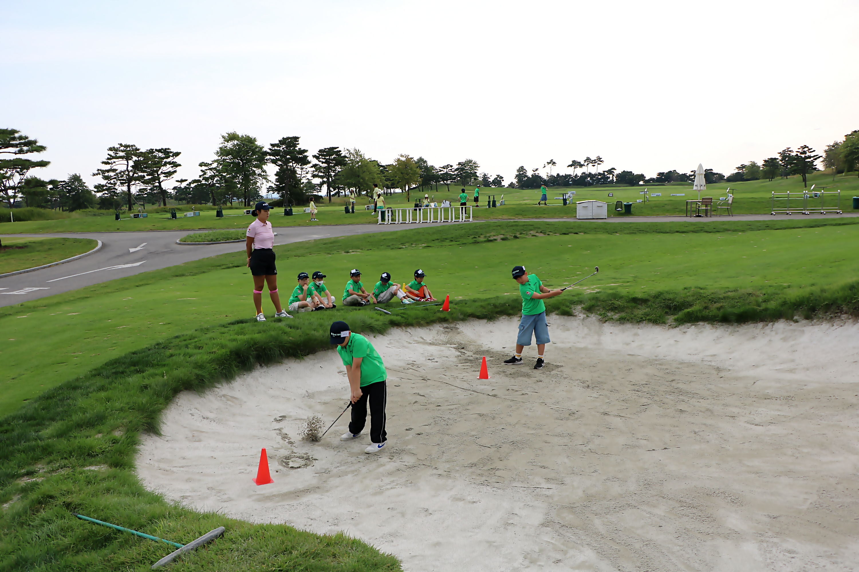 코치님께 배운 벙커샷 요령대로 실습해 보고 있는 아이들