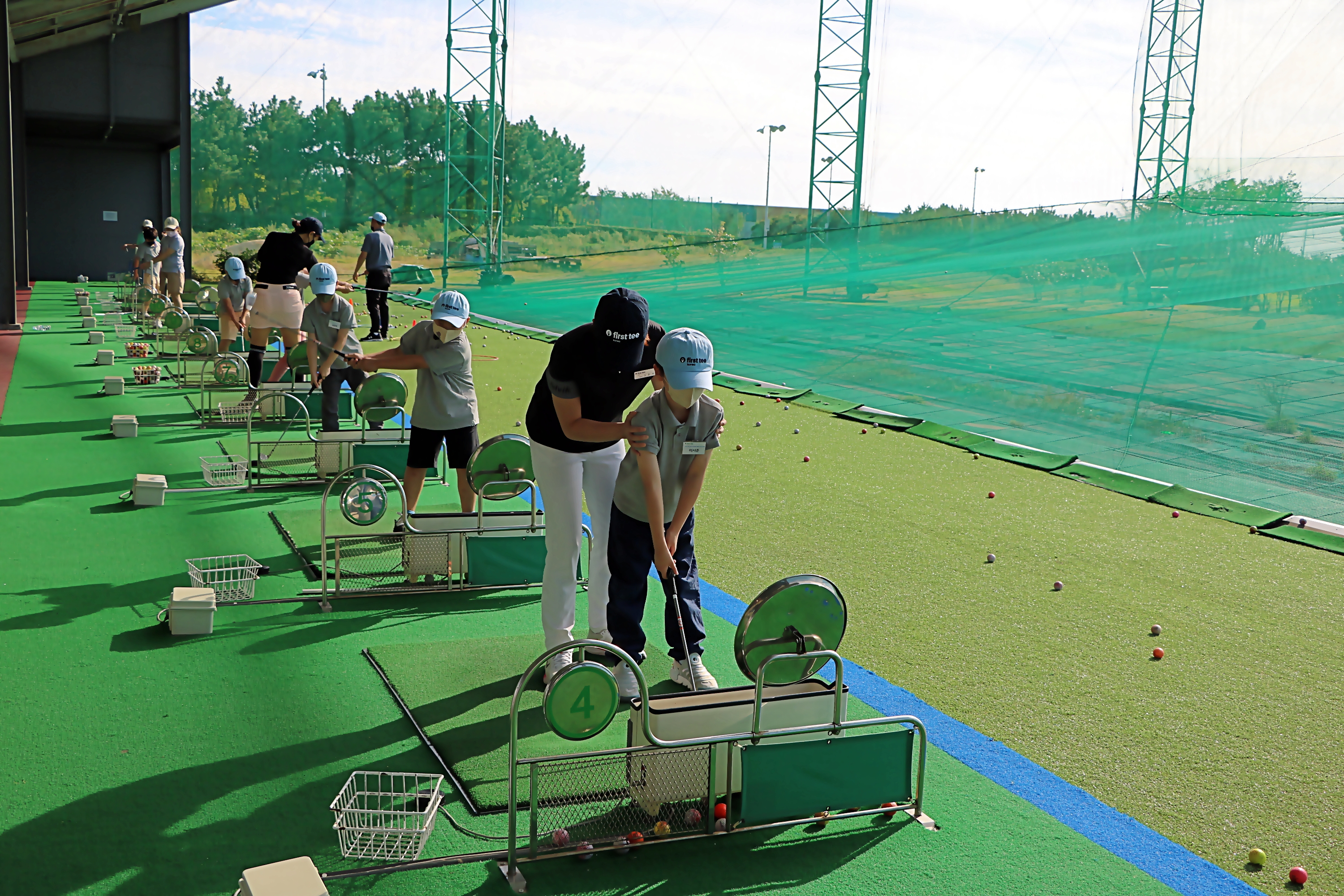 교대로 실습하고 있는 가운데 개인별로 레슨을 해주고 있는 모습
